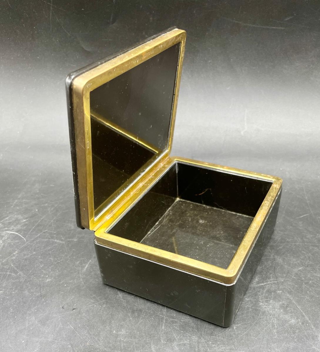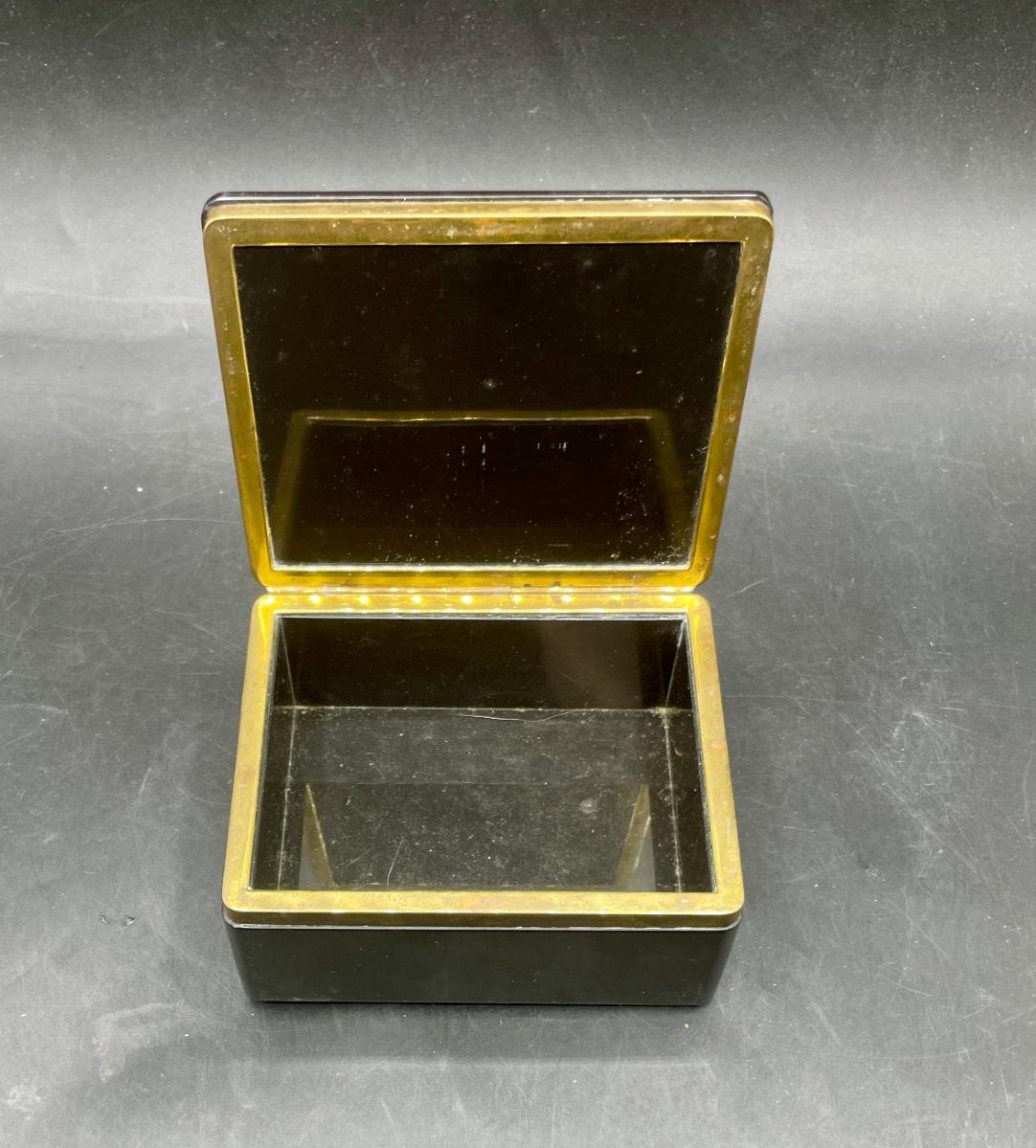 Black Onyx Glass Lidded Trinket Box with Goldtone Trim