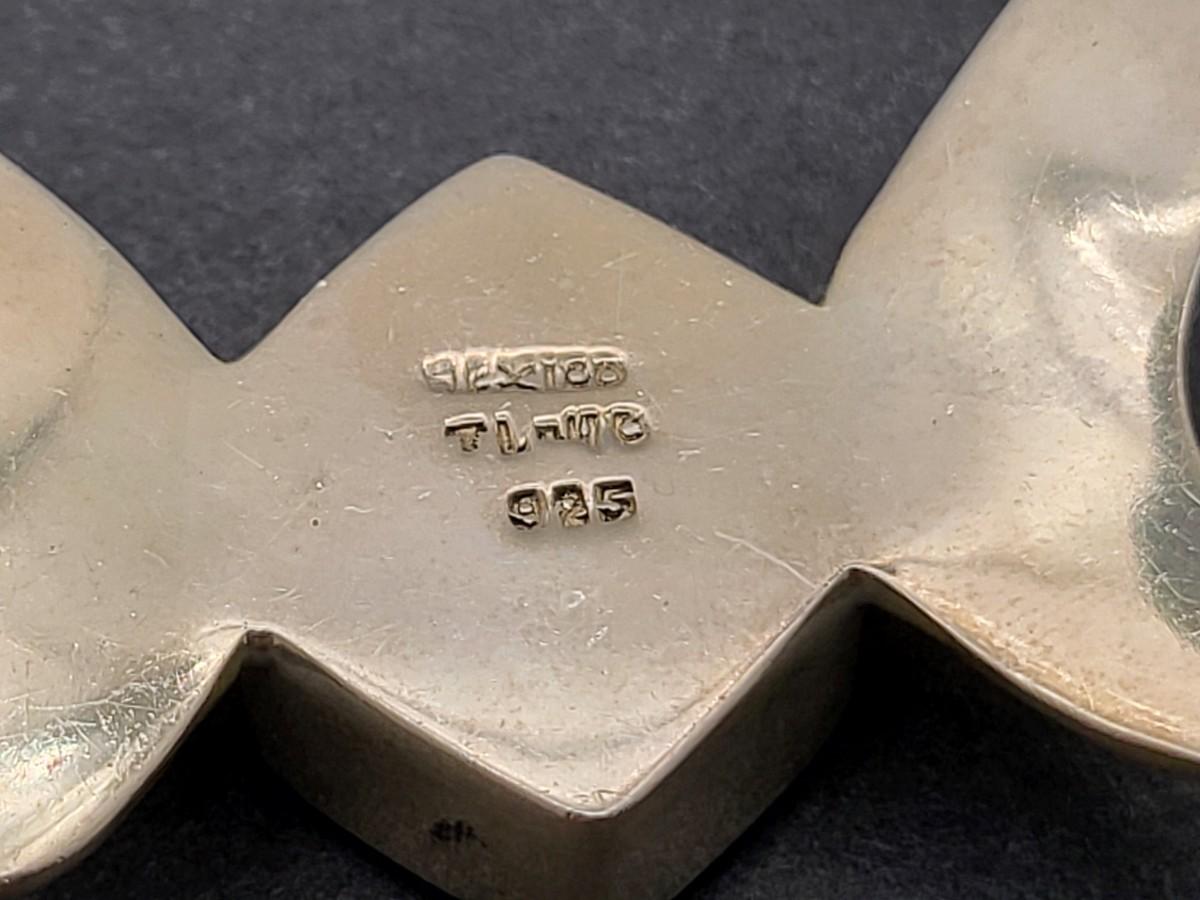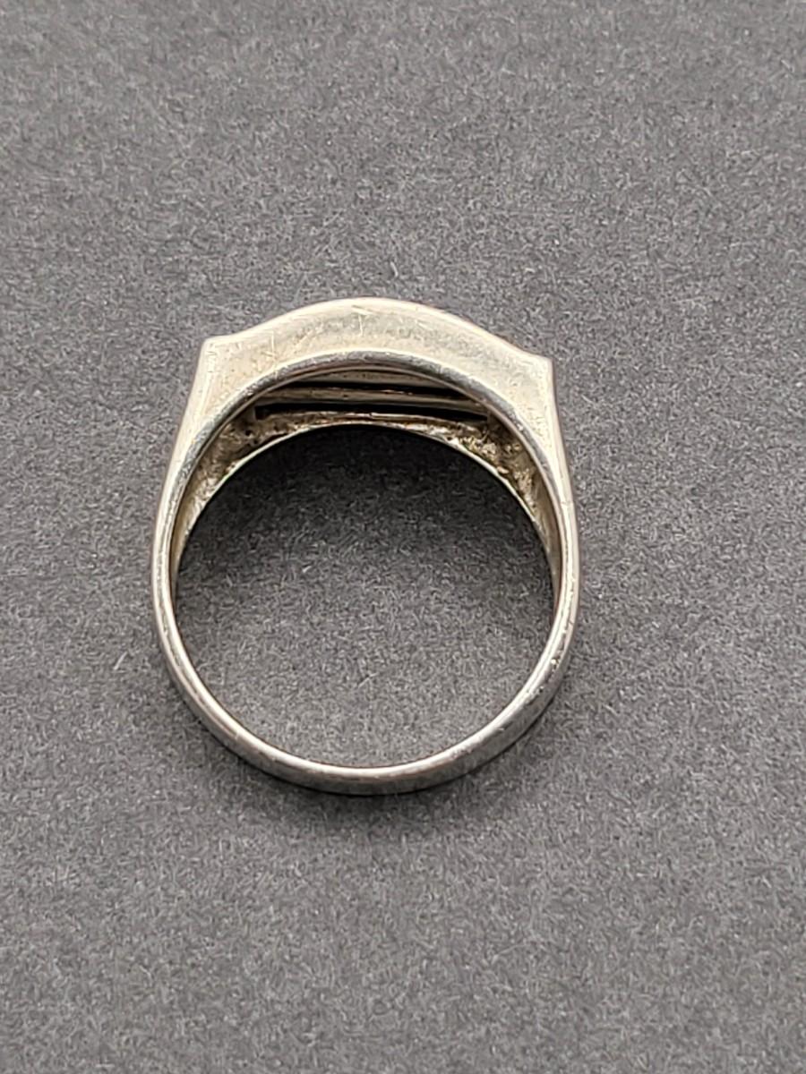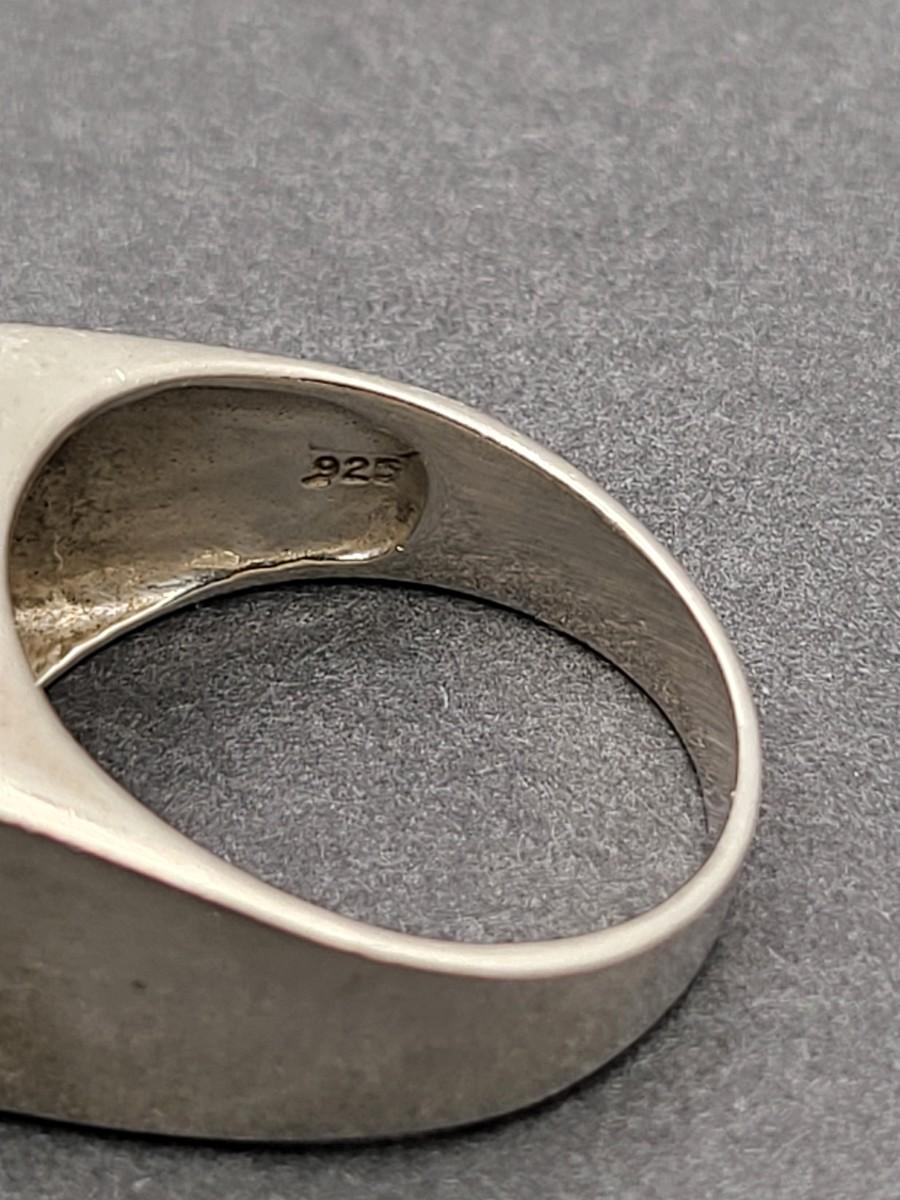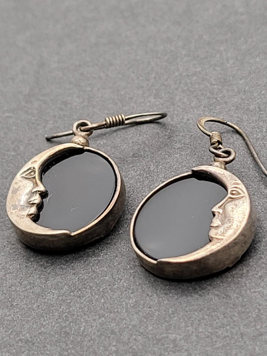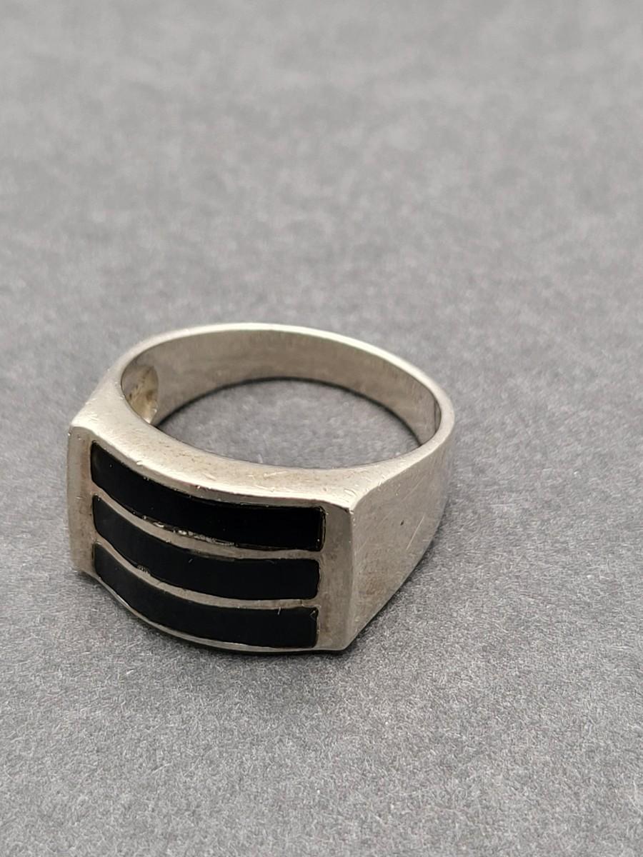 Stunning, vintage Mexico 925 cuff bracelet. Hexagon onyx stone is 1.25" wide. Three row onyx inlay ring size 9.5 & moon earrings, 3/4" diameter. Total weight is 50.7 grams.