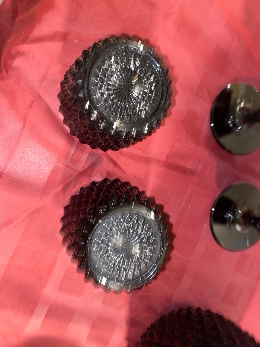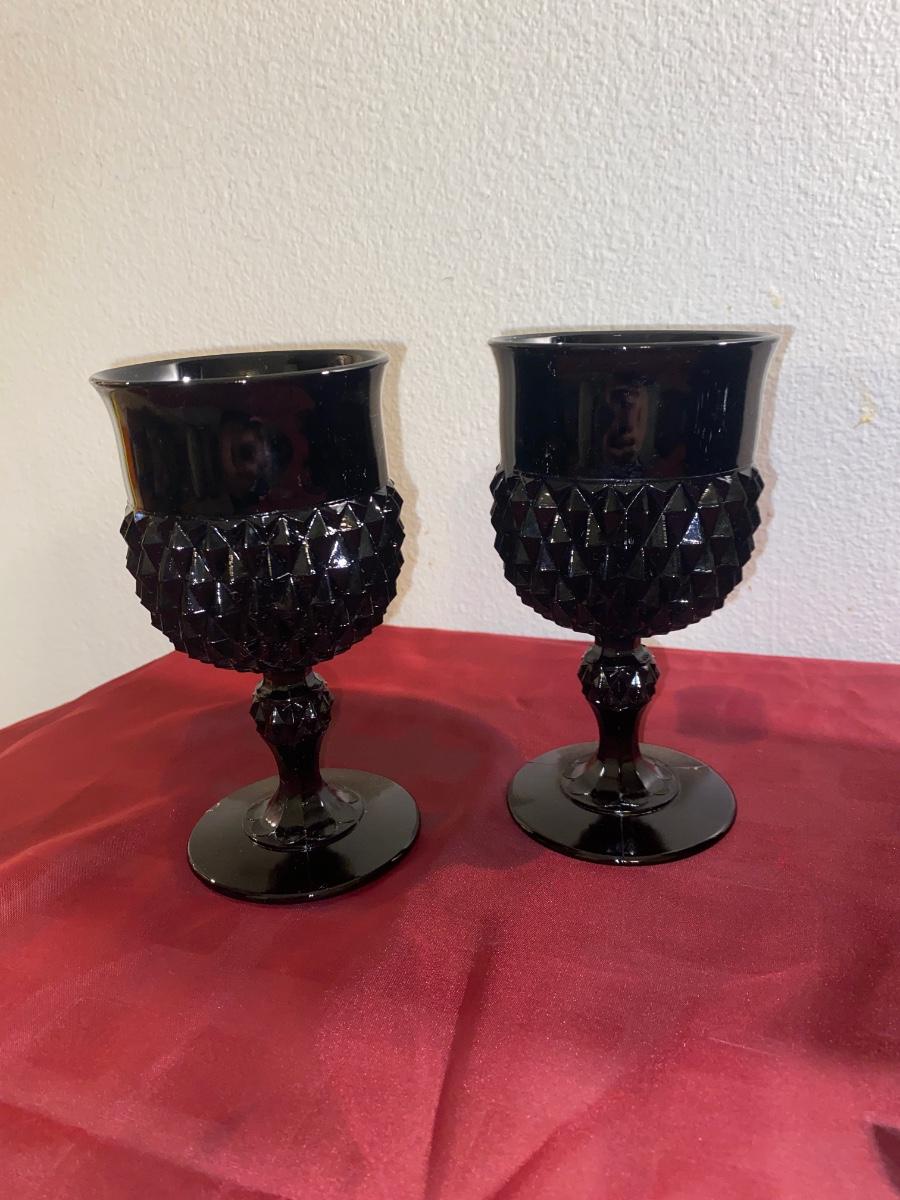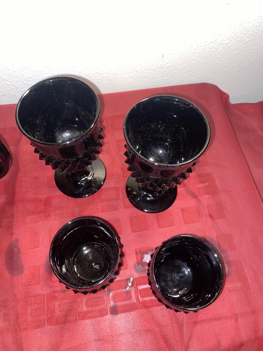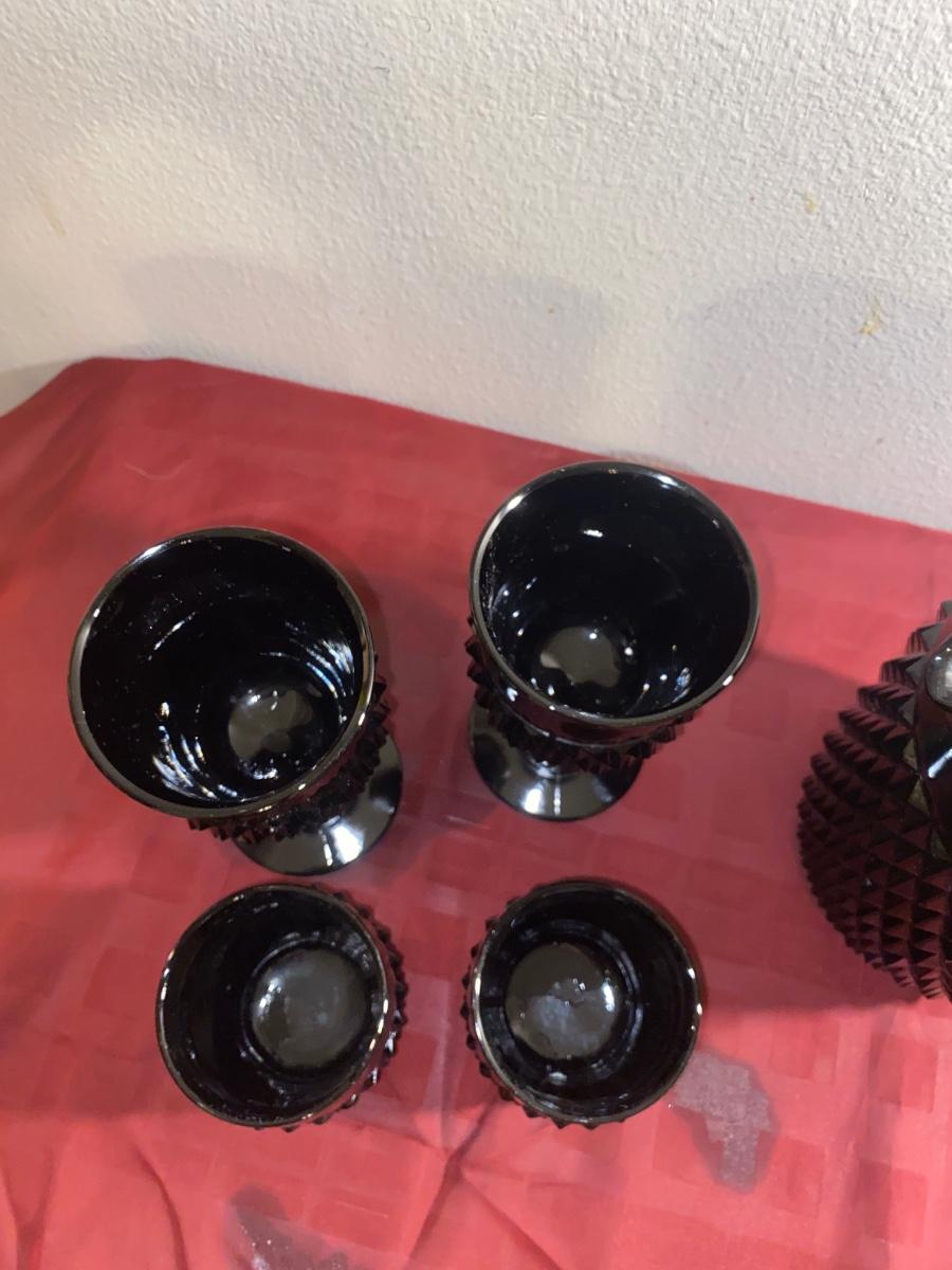 BLACK ONYX DIAMOND POINT TIARA GLASS PITCHER AND DRINK WARE