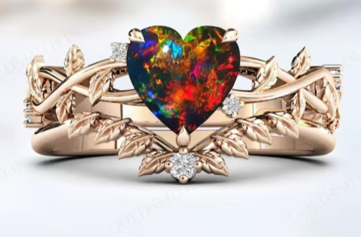 Black Opal Rose Gold Ring 14k