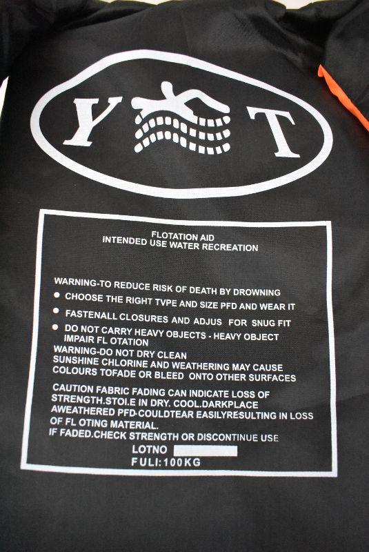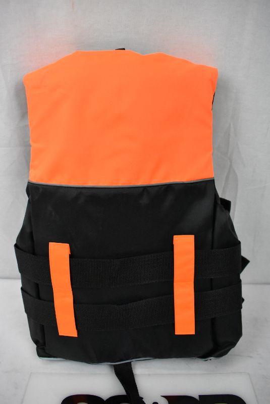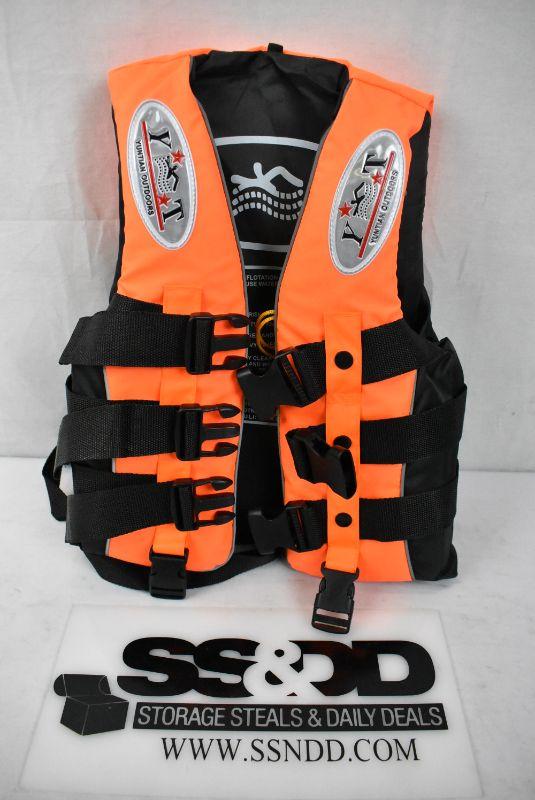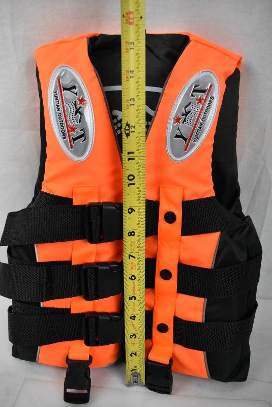 Black & Orange Flotation Aid by Yuntian Outdoors. Adjustable Sizing for Children, Orange & Black. Attached whistle with pocket. No tags - New