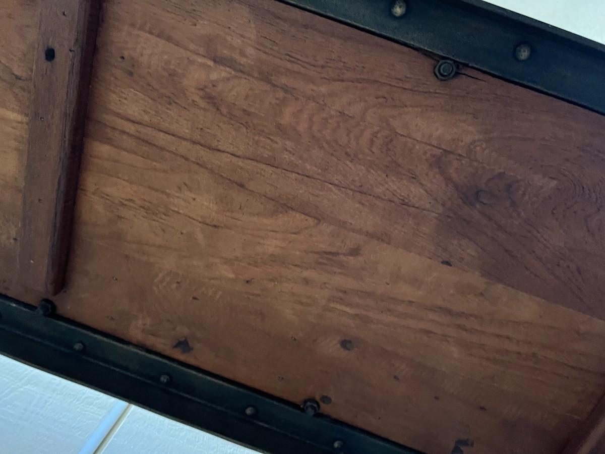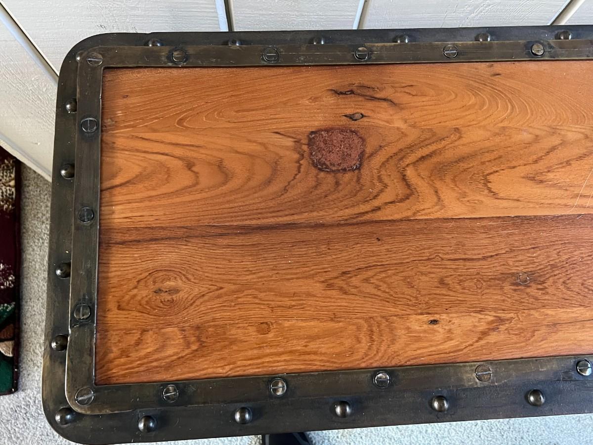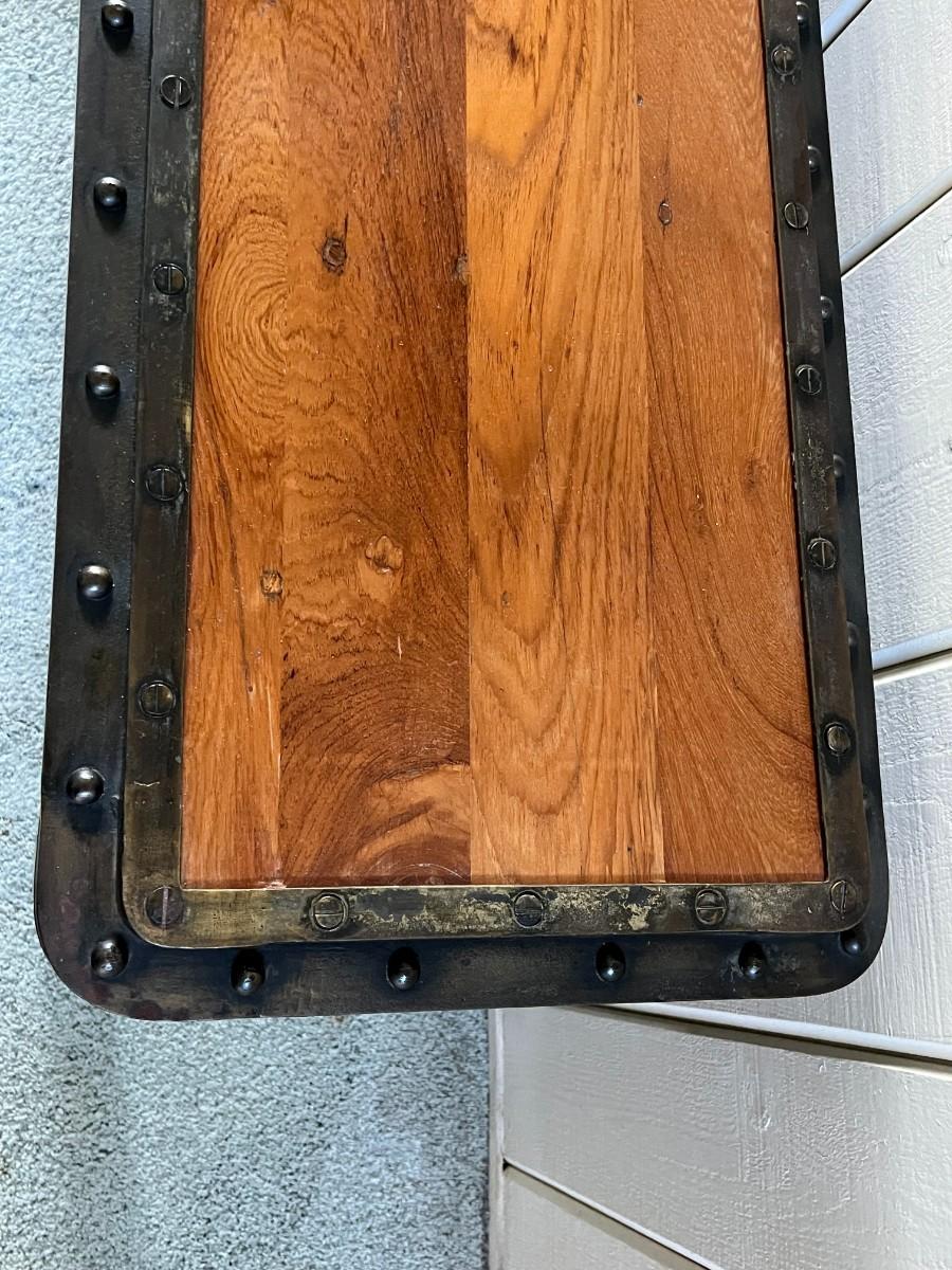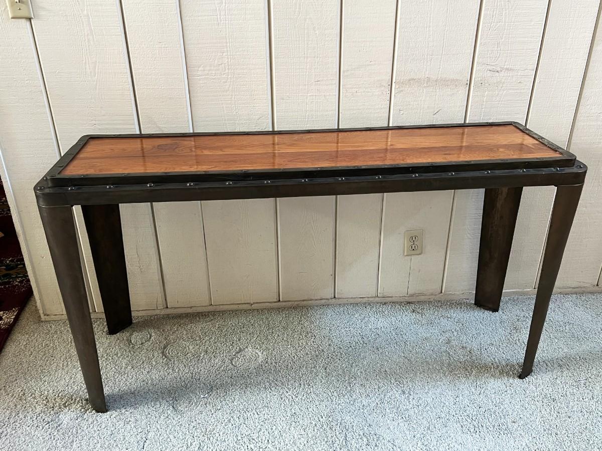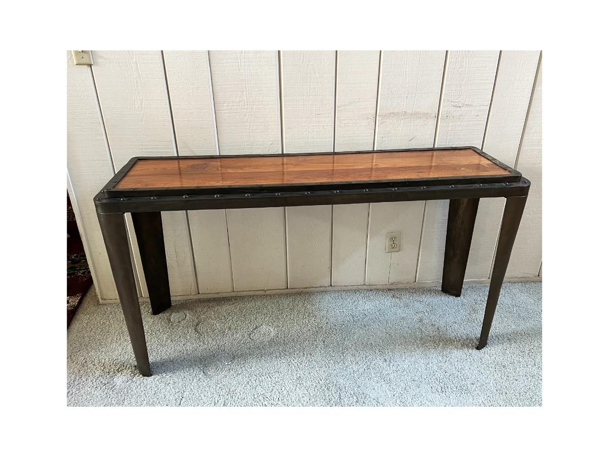 Black Painted Metal and Wood Console Sofa Table. In good industrial rustic condition.