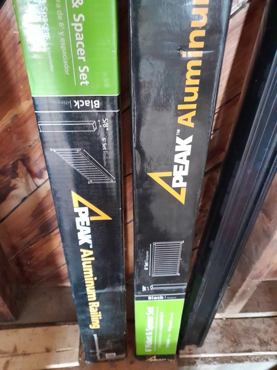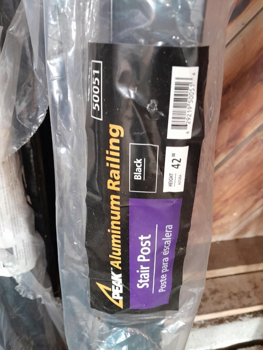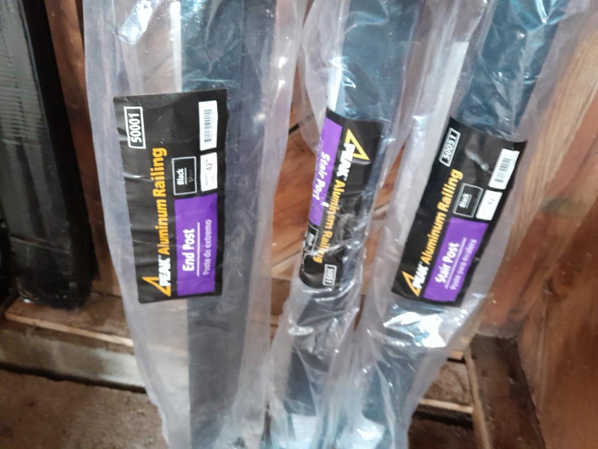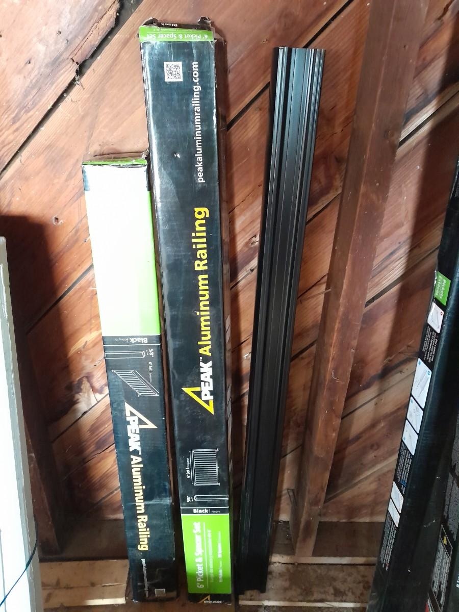 BLACK PEAK ALUMINUM RAILING DECK / PORCH RAILING PIECES THESE ARE LEFTOVER PARTS AND PIECES FROM A PREVIOUS INSTALL. SOME PIECES HAVEN'T BEEN OPENED.