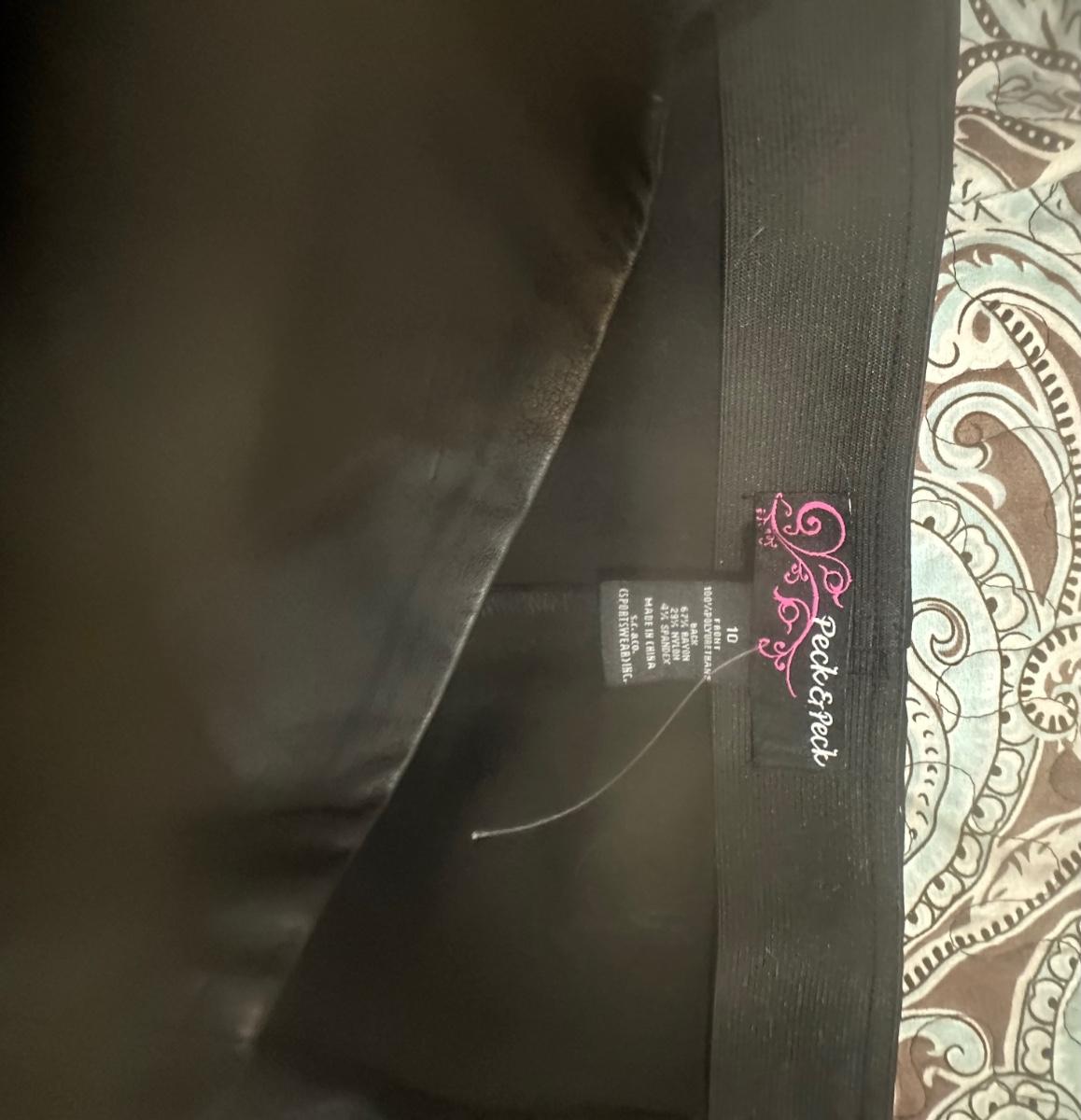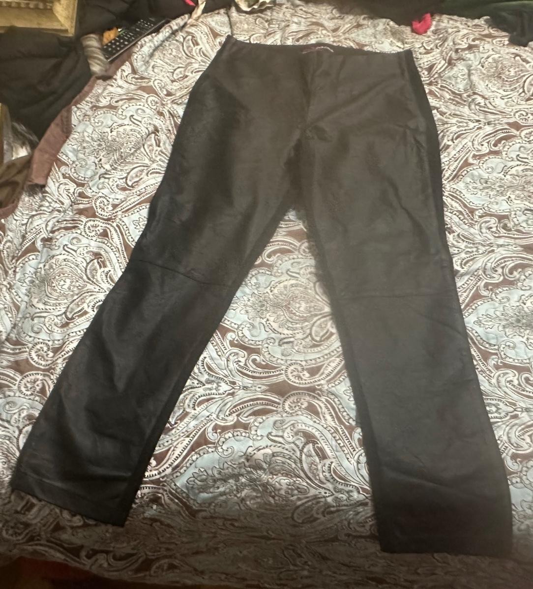 The front is 100% polyurethane, and the back is a blend of rayon, nylon, and spandex.
