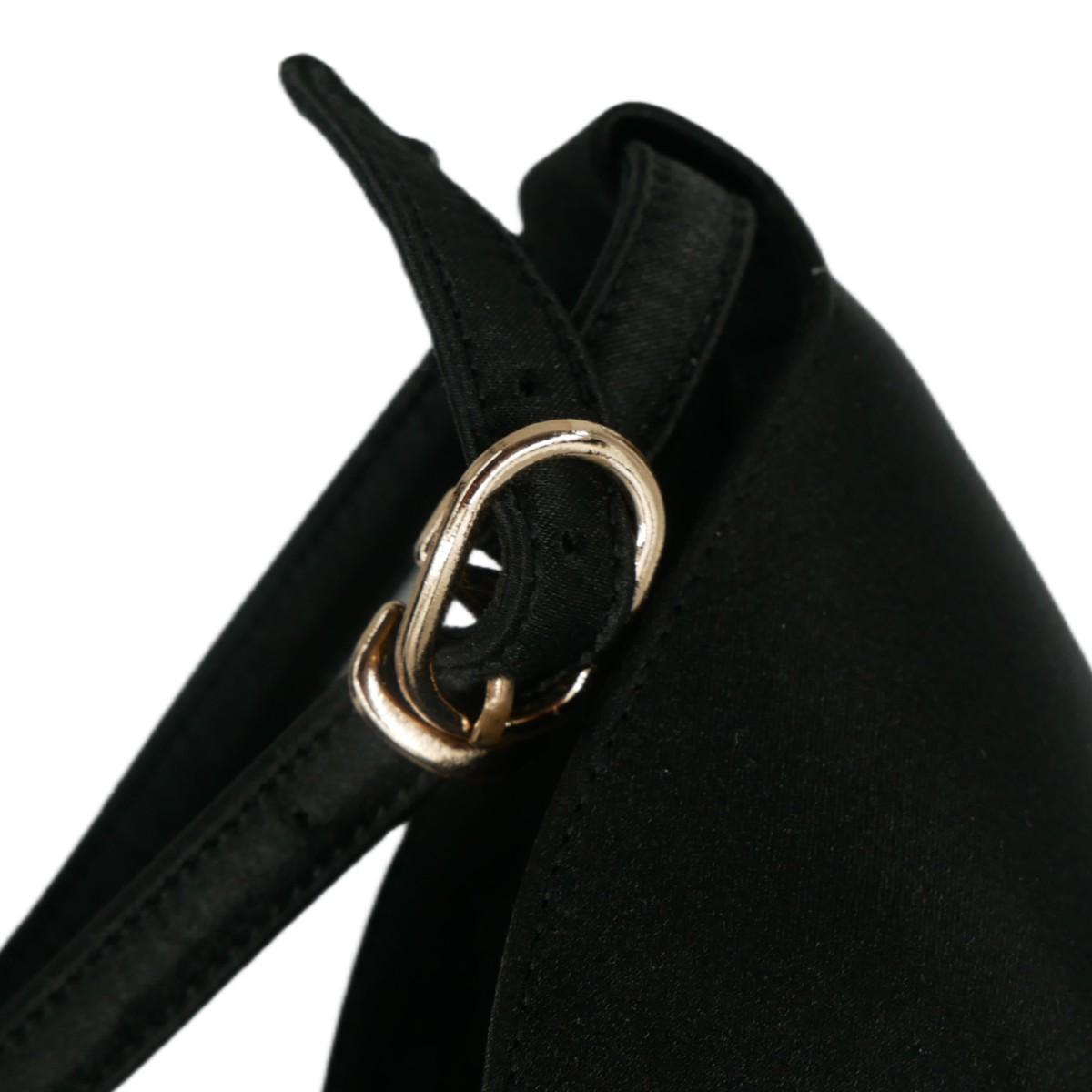 Black high heel platform block shoes with faux clasp, women's size 9.
