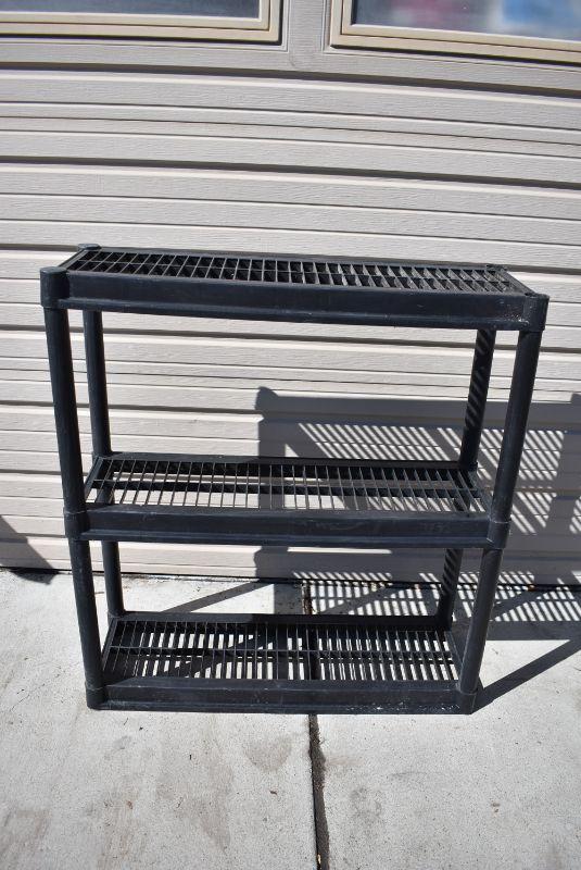 Black Plastic Shelving, 3 Shelves, Shallow, Slotted Tops