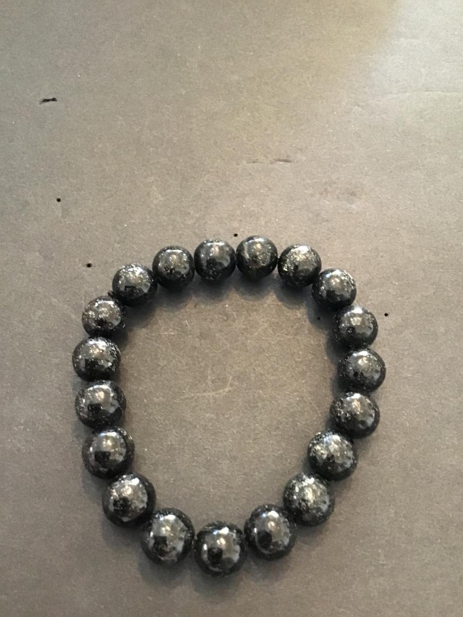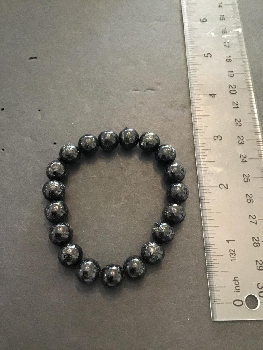 Black polish stone beaded stretch bracelet. Please see attached photos.