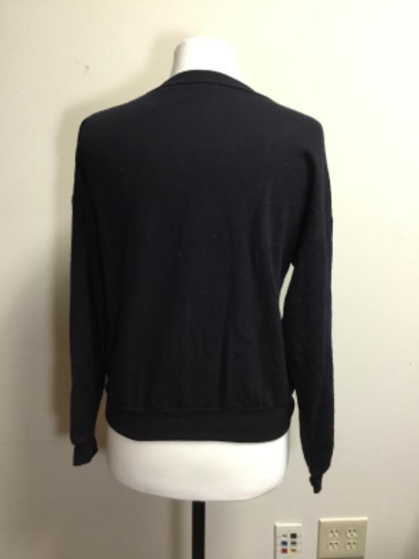 Black pullover sweater, by California Filly , small or medium size, but tag is faded. It measures 20" across and 21" top to bottom.