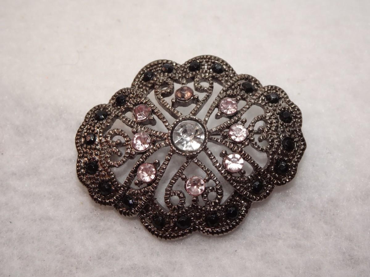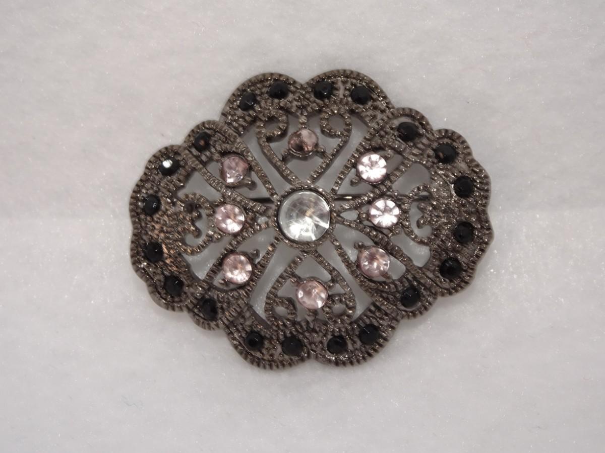 Black & Purple Victorian Style Rhinestone Collar Brooch