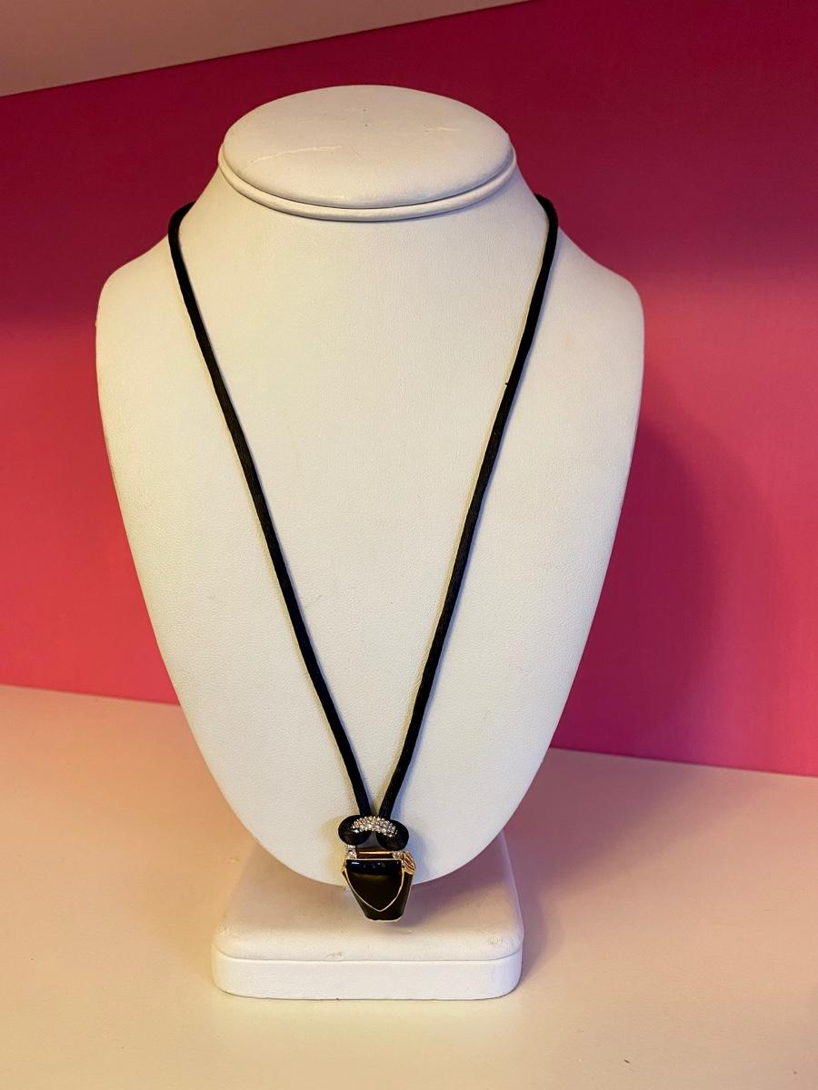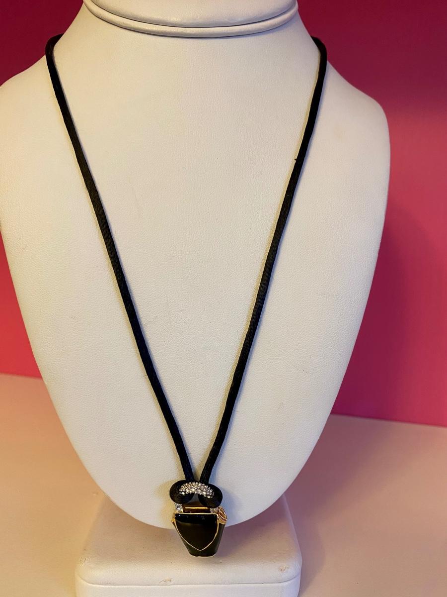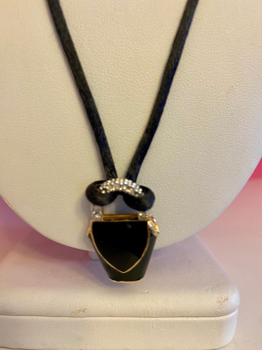 Black Purse with Crystal Handle Pendant Necklace