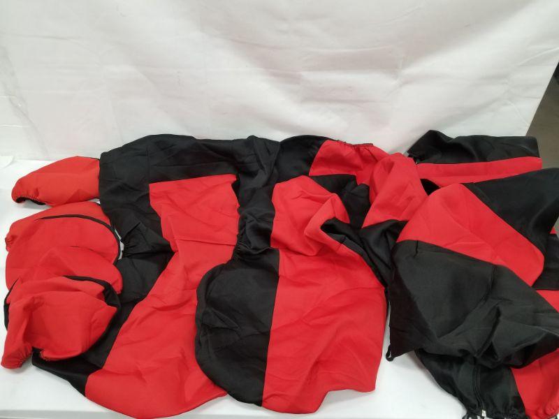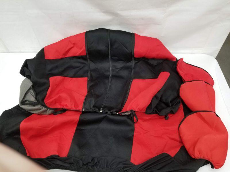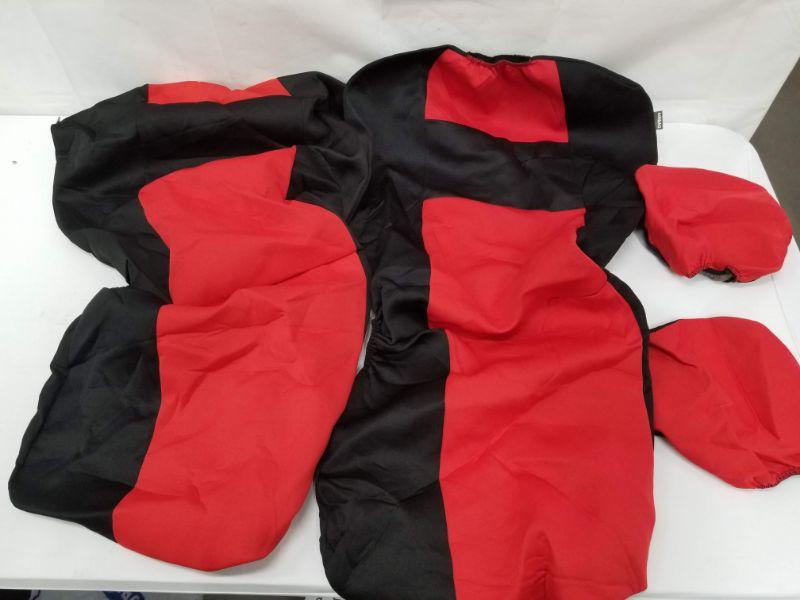Black & Red Car Seat Covers Set - 2 Bucket, 1 Bench, 5 Headrests - Open Box, New