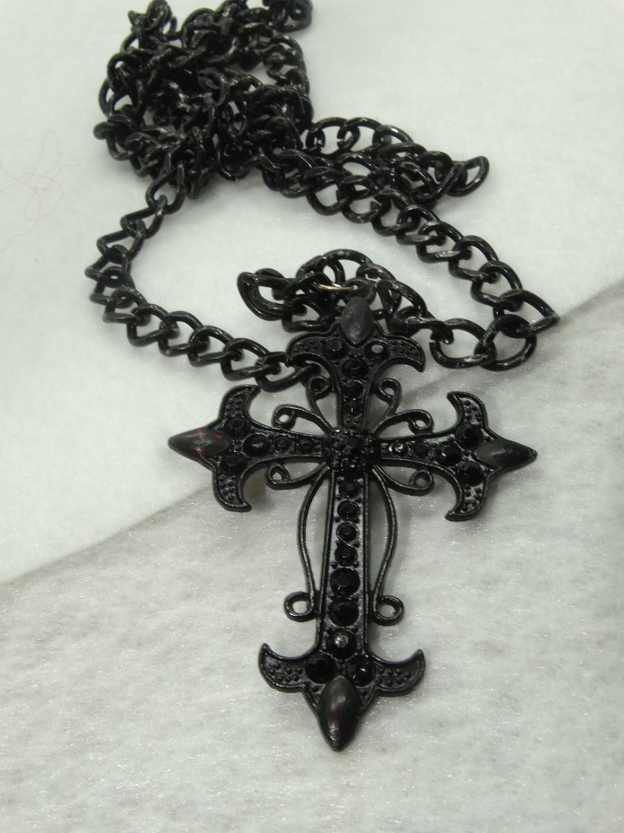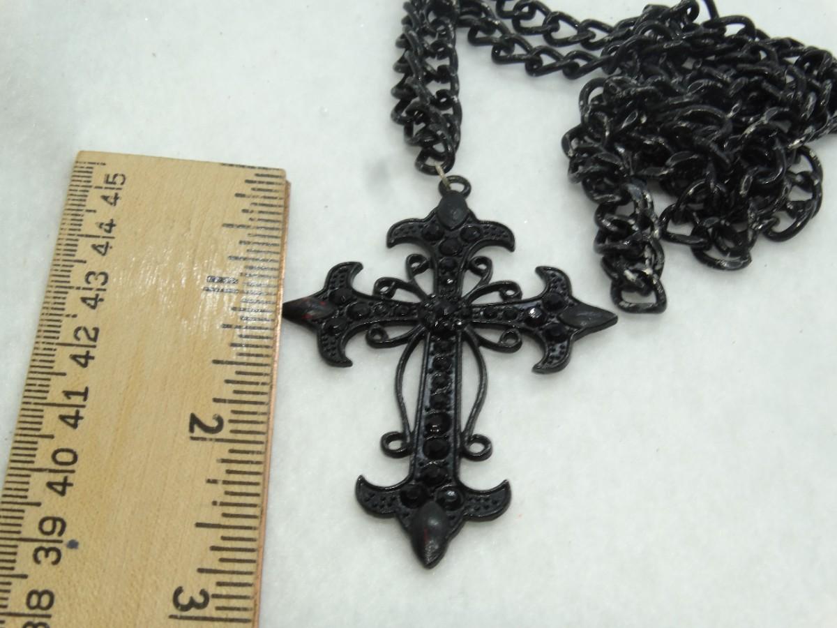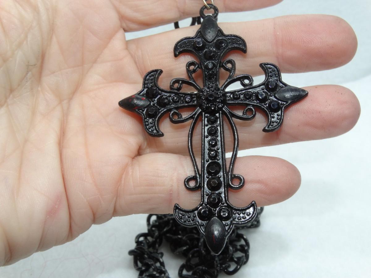 Black Rhinestone Cross, Crucifix Goth Style Statement Necklace