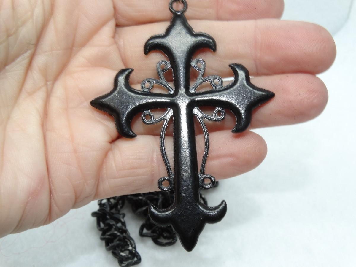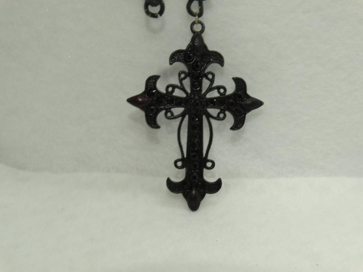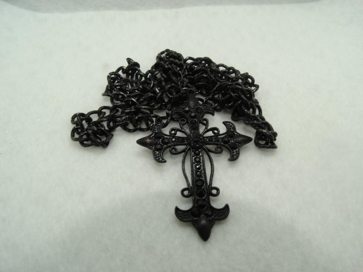 Black Rhinestone Cross, Crucifix Goth Style Statement Necklace