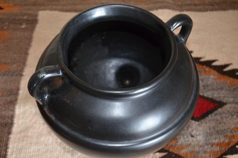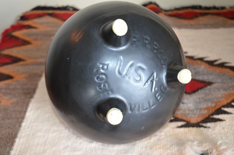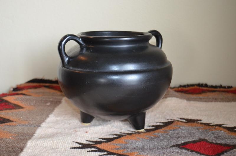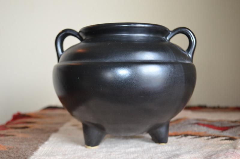 BLACK ROSEVILLE FOOTED POT 6 1/2" TALL PERFECT CONDITION