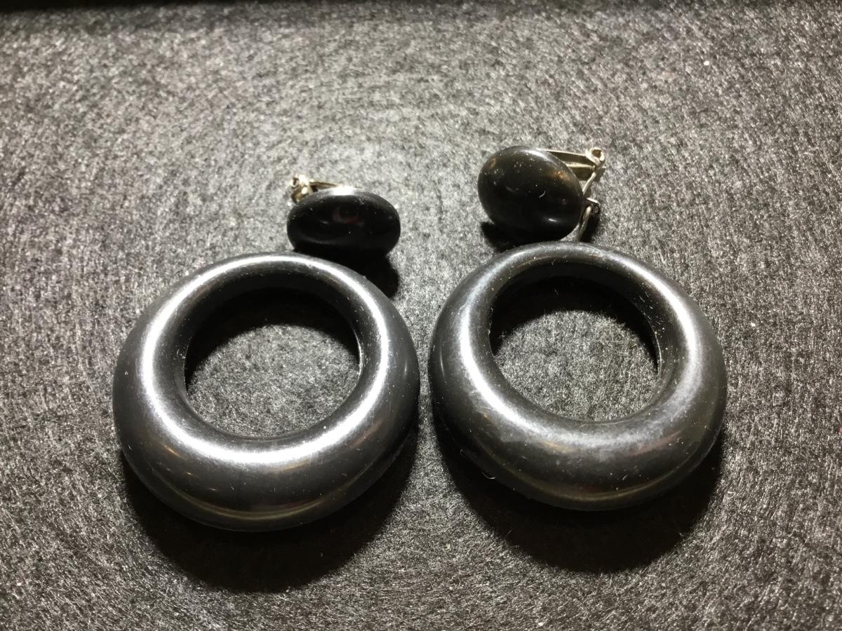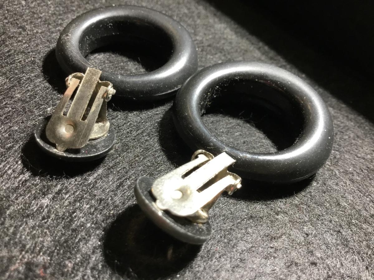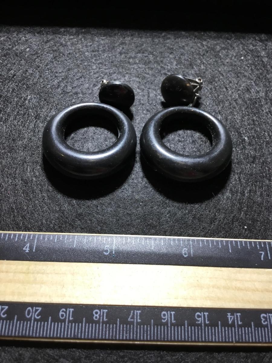 Black round vintage clip on earrings