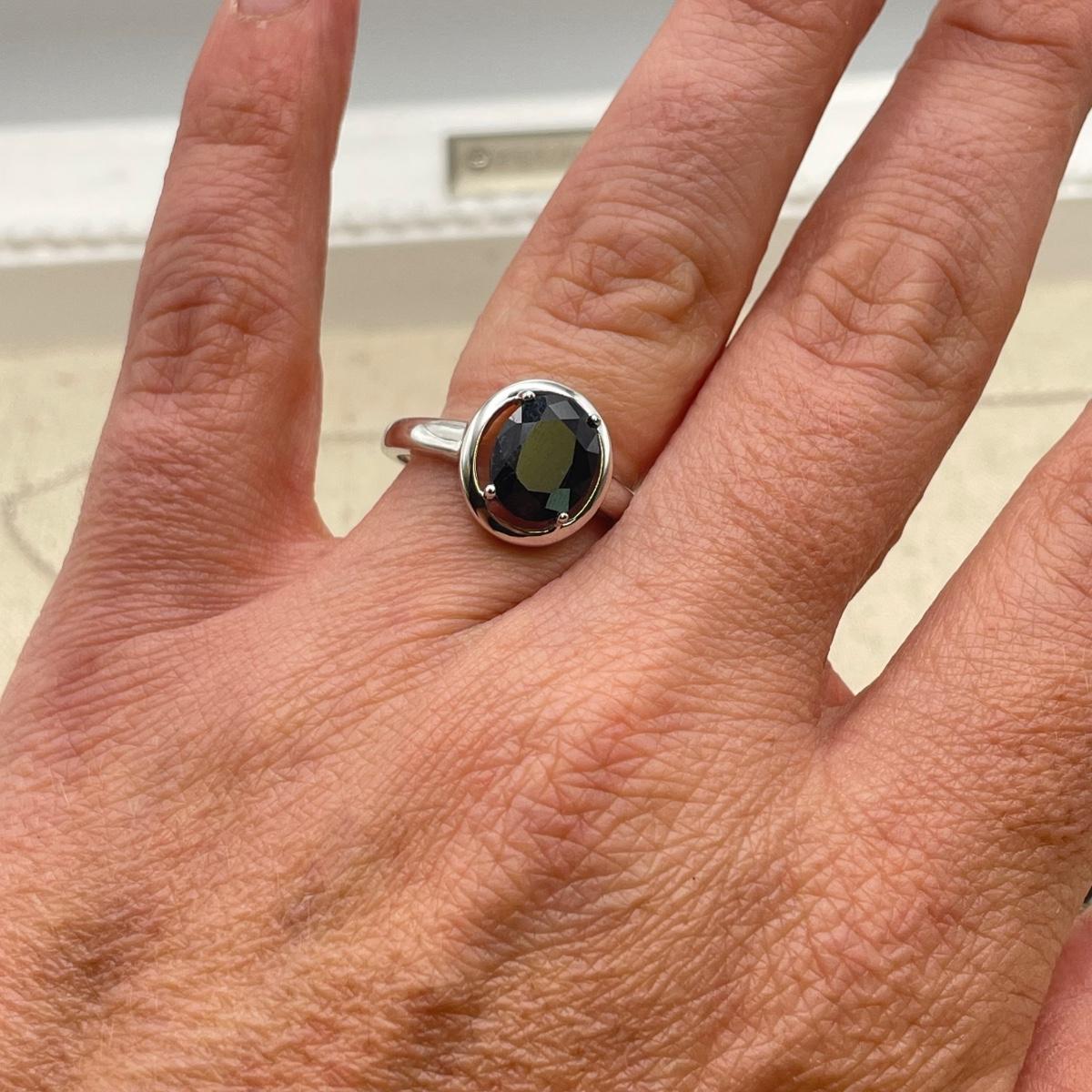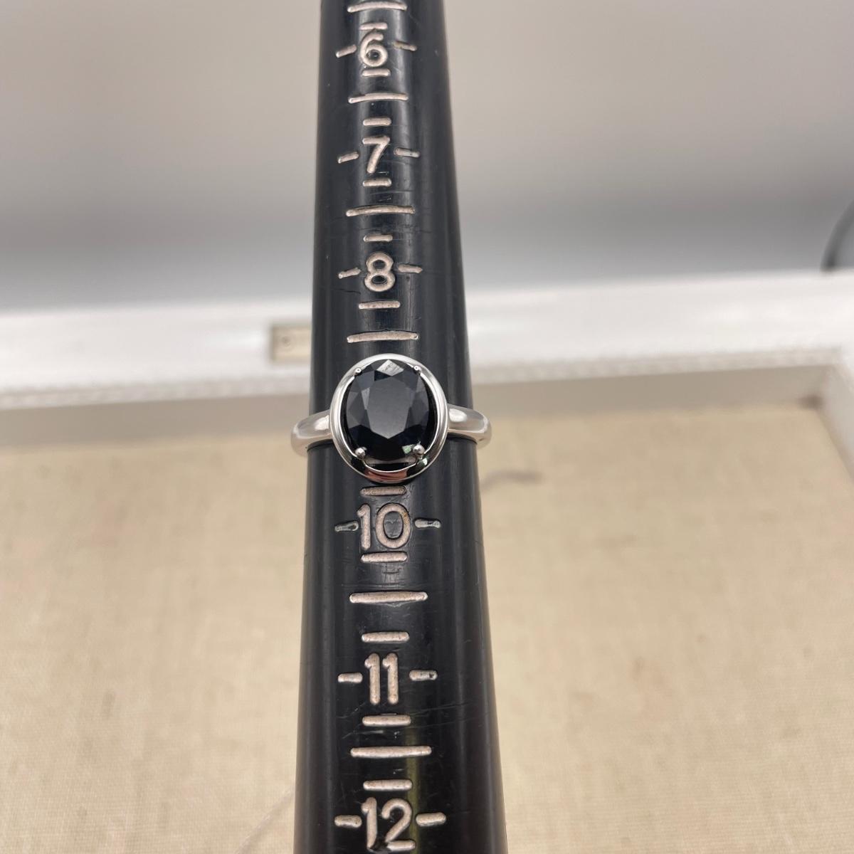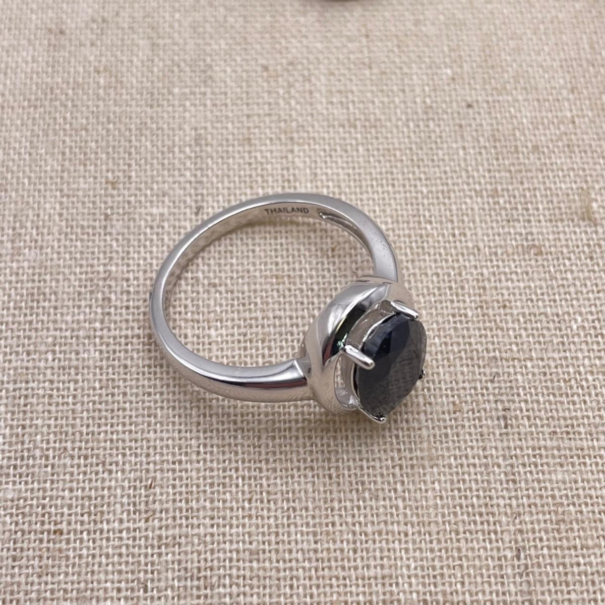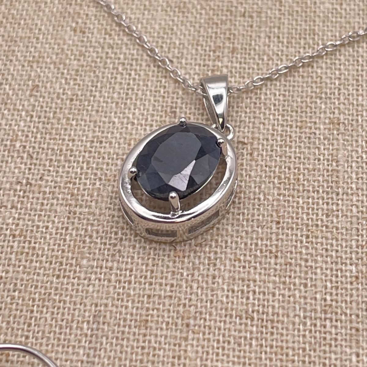 Stunning set of 925 marked earrings, ring and necklace appears to be black sapphire. Earrings dangle from pierced ears and clasp hooks. Chain also marked 925 measures 18”. See images for all markings found. We cannot guarantee the authenticity of any gemstone. All sales are final. No returns or refunds. Please bid accordingly.