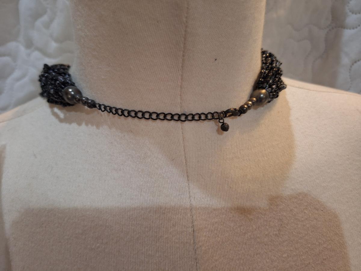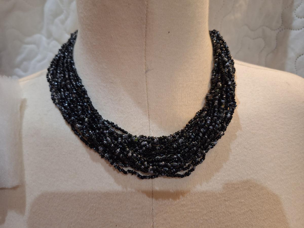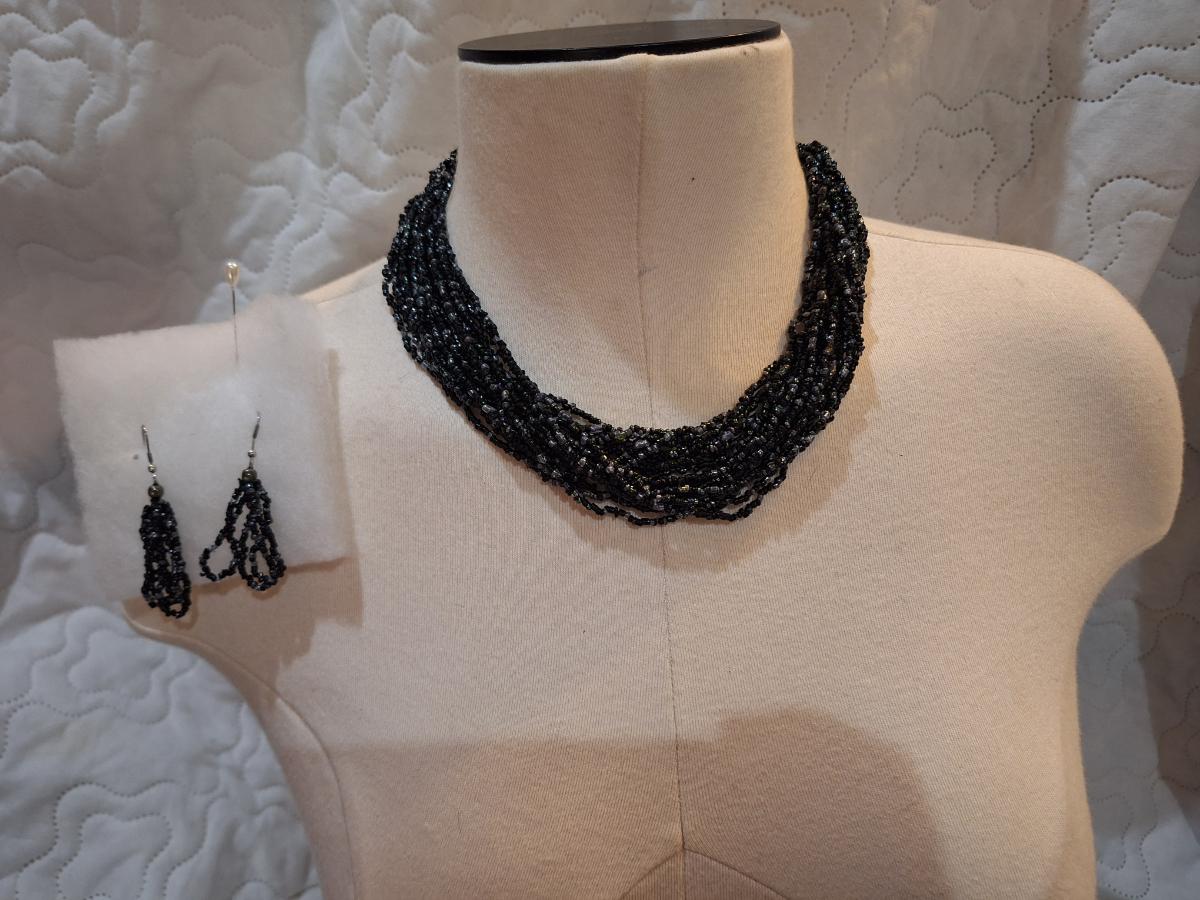 Black seed bead multistrand choker necklace with matching earrings
