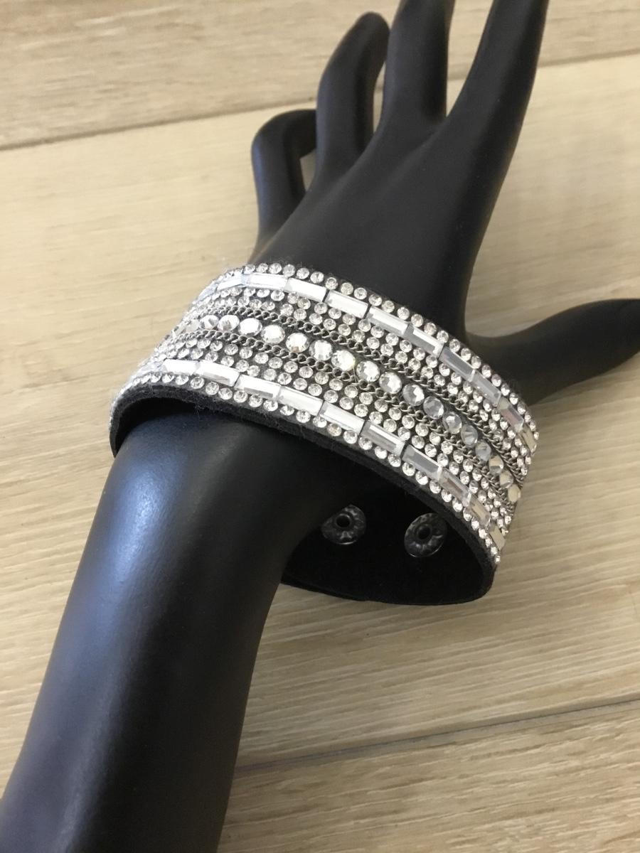 Black snap on rhinestone bracelet