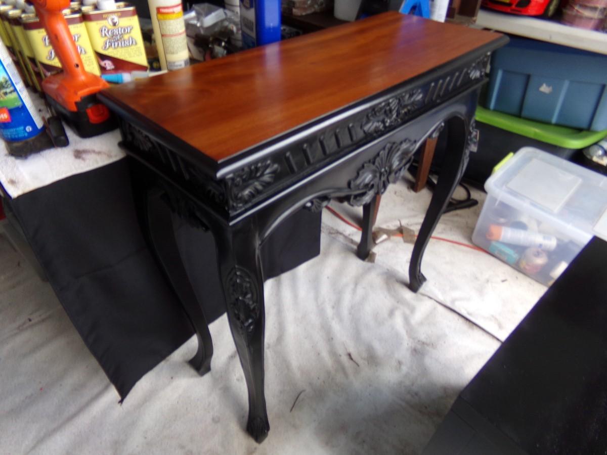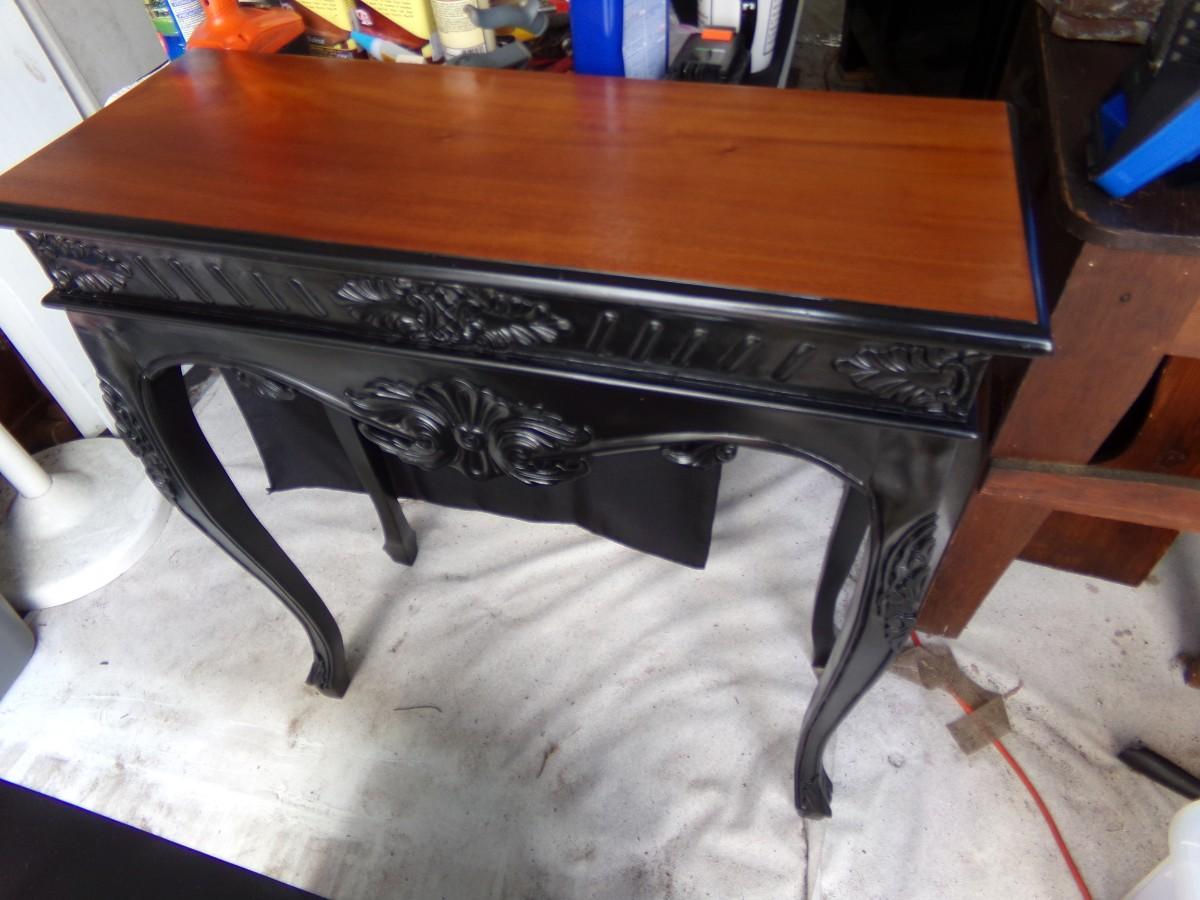Black sofa/hall table.