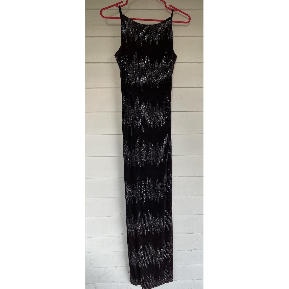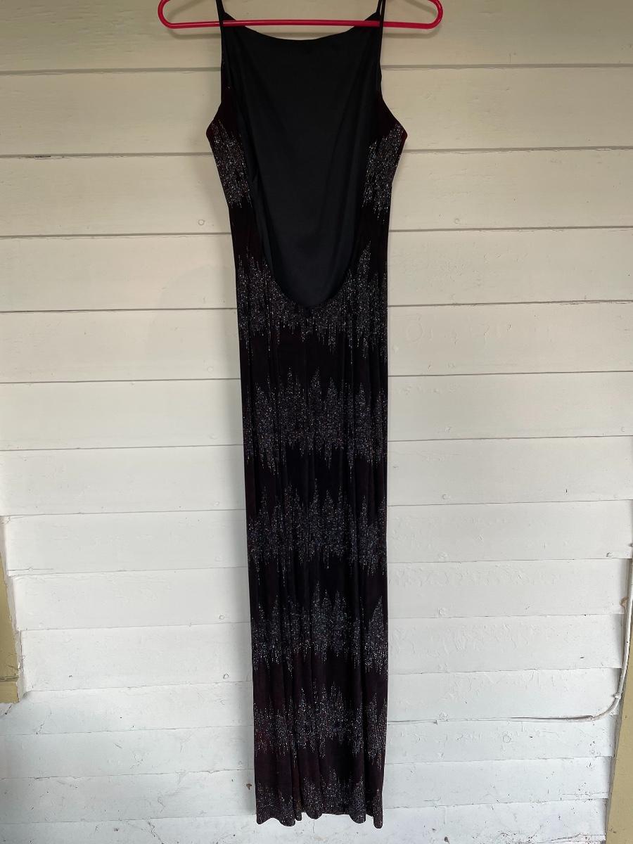 BLACK SPARKLY BACKLESS EVENING DRESS - SIZE 9-10