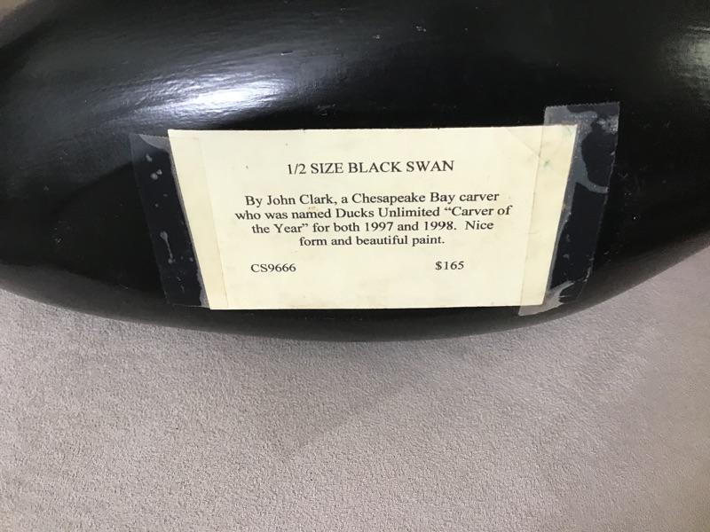 1/2 size Black swan by John Clark, Ducks unlimited award winner. Carver of the year in 1997 and 1998. Great Condition