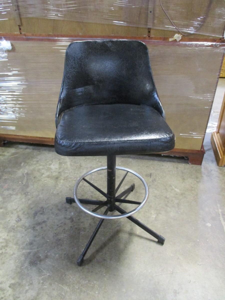 They are black vinyl, with black painted steel shafts, and chrome footrests. Made by Cosco, founded in 1935 as Columbus Specialty Company, name changed in 1941 to the contraction Cosco. during WWII they were contracted to produce military equipment. After the war, they introduced a full line of metal household stools.