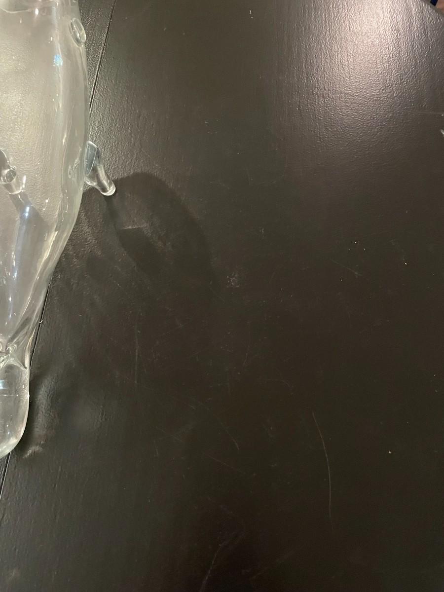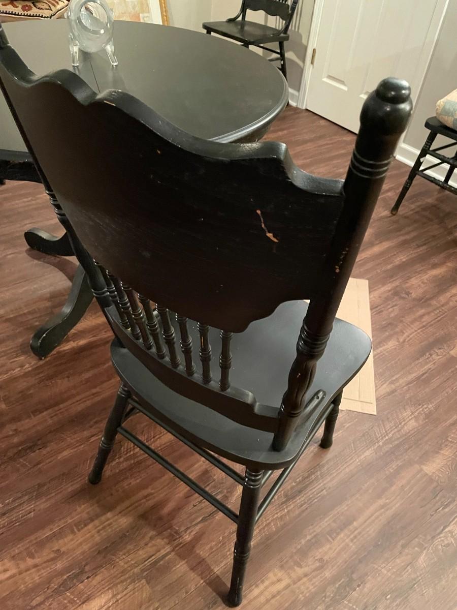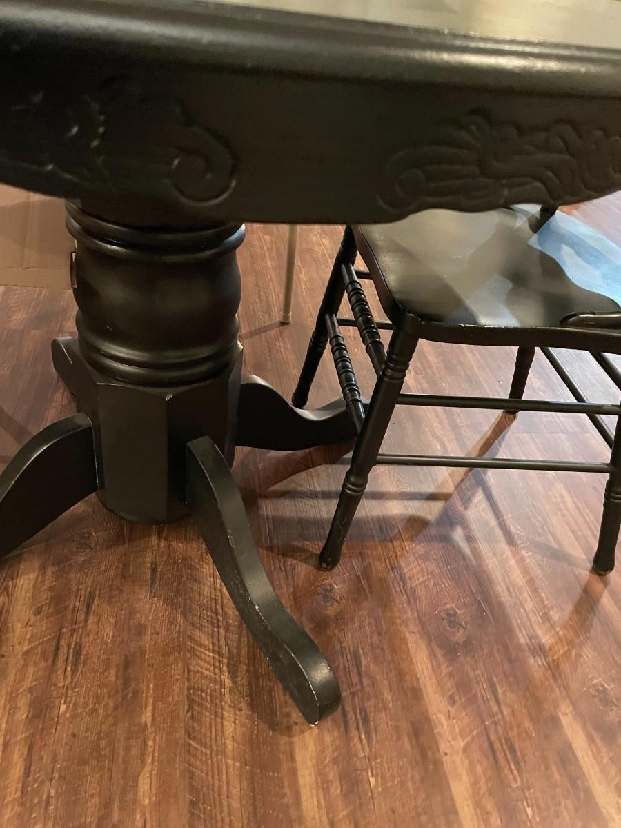 Black Table w/4 Chairs and Glass Fish Art - Item Must be Scheduled for Pickup.
