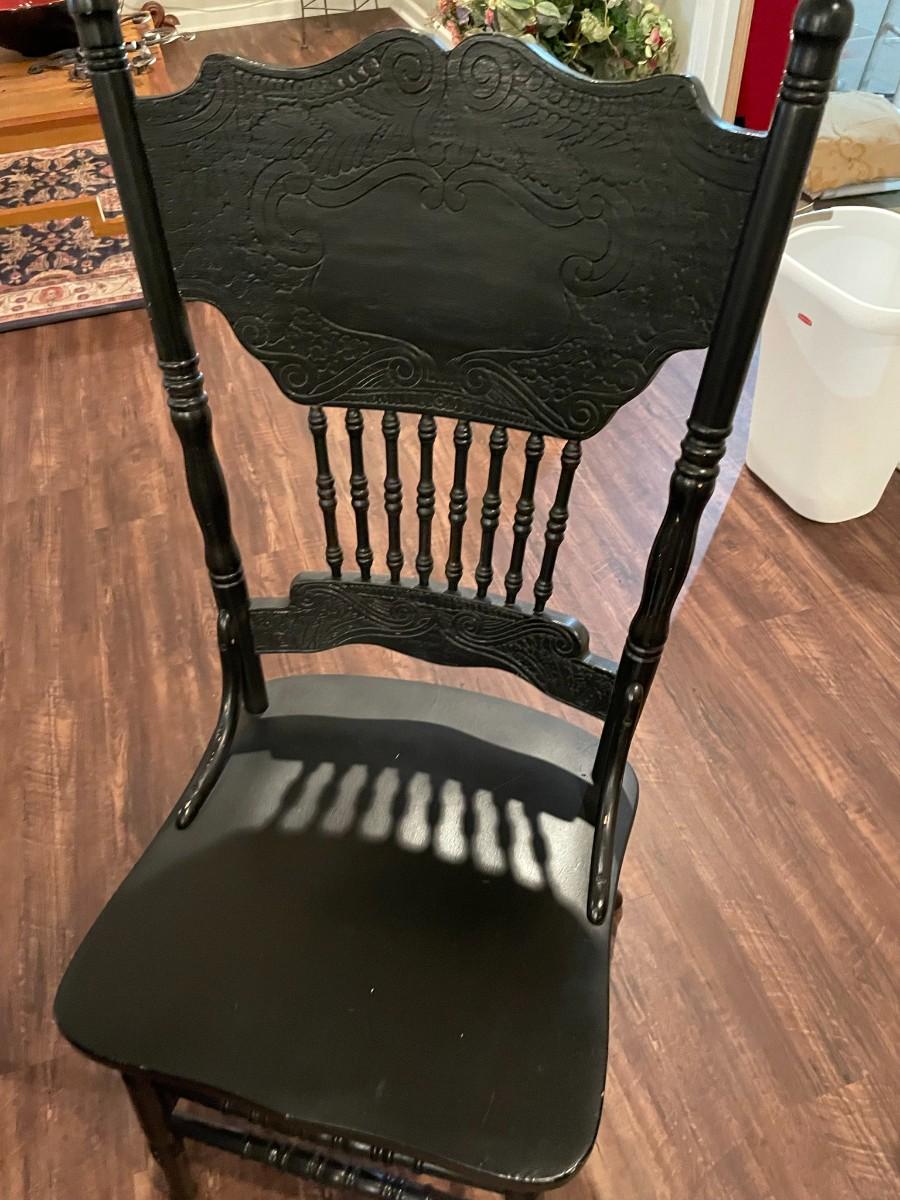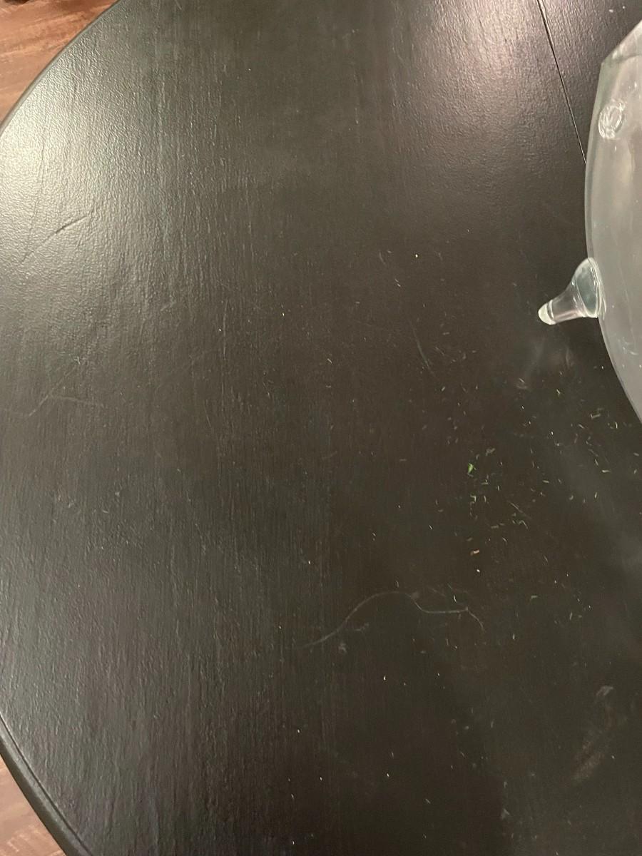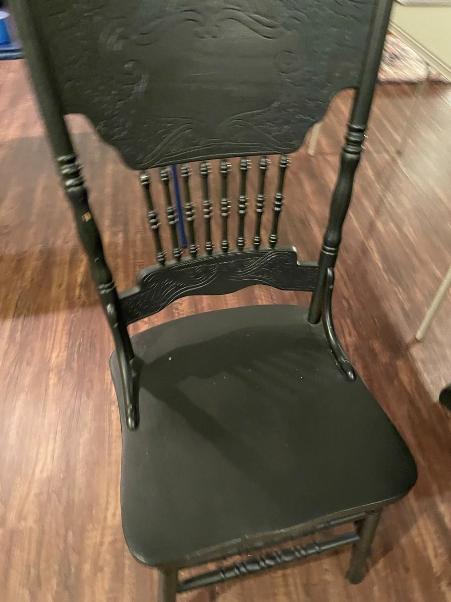 Black Table w/4 Chairs and Glass Fish Art - Item Must be Scheduled for Pickup.