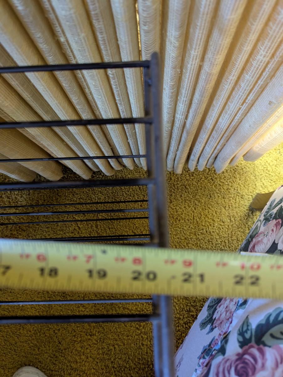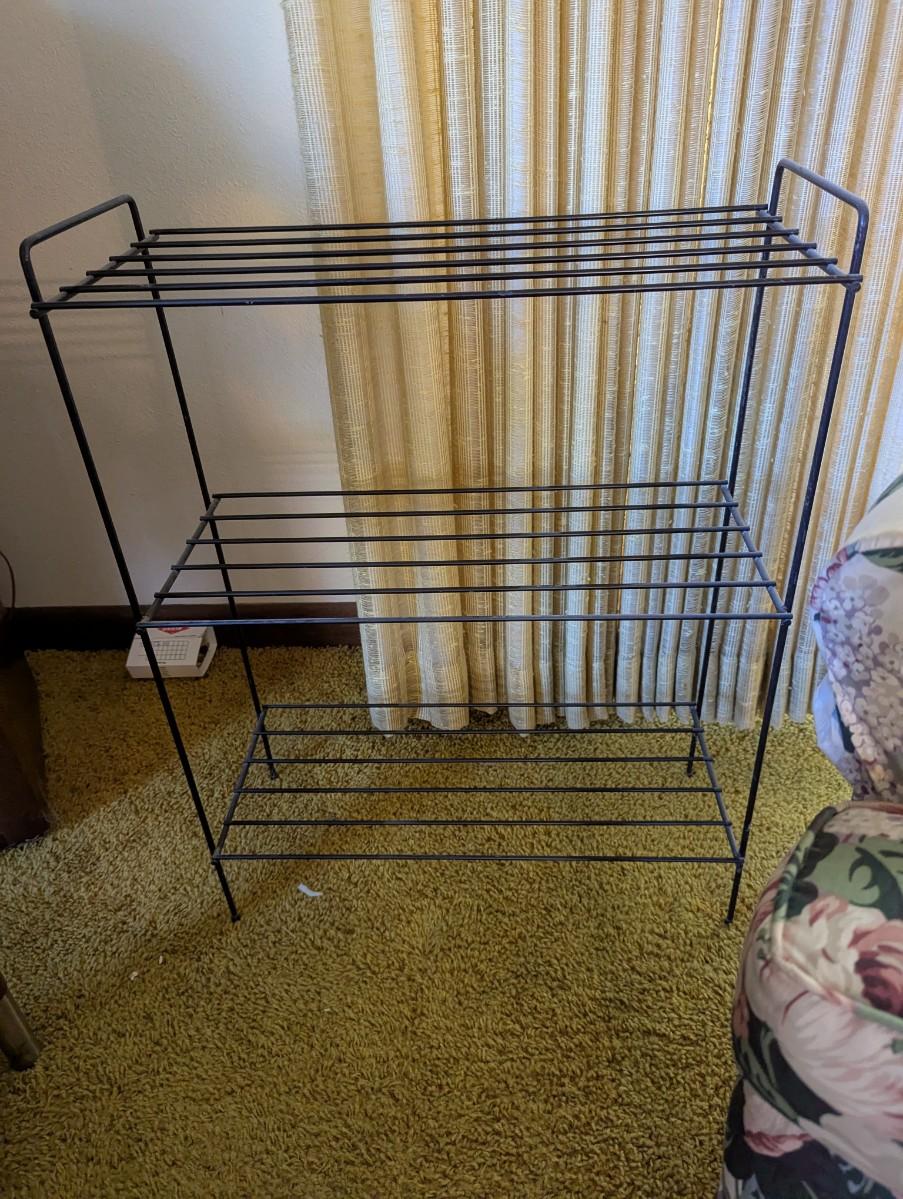 .Small lightweight black metal shelf.