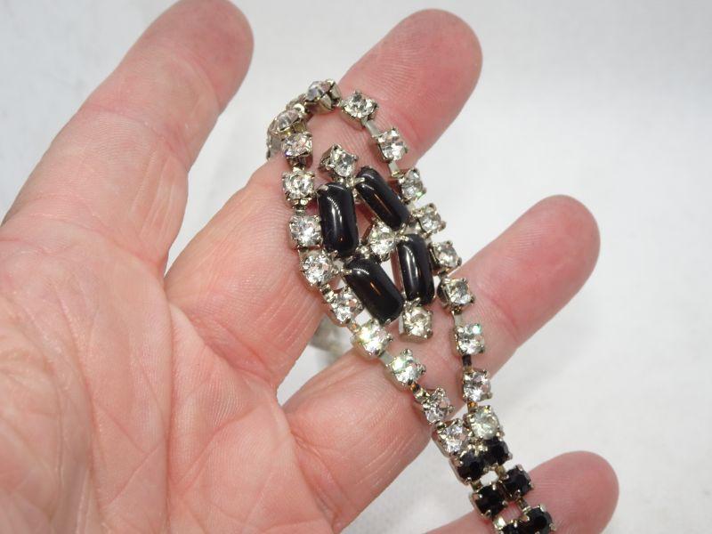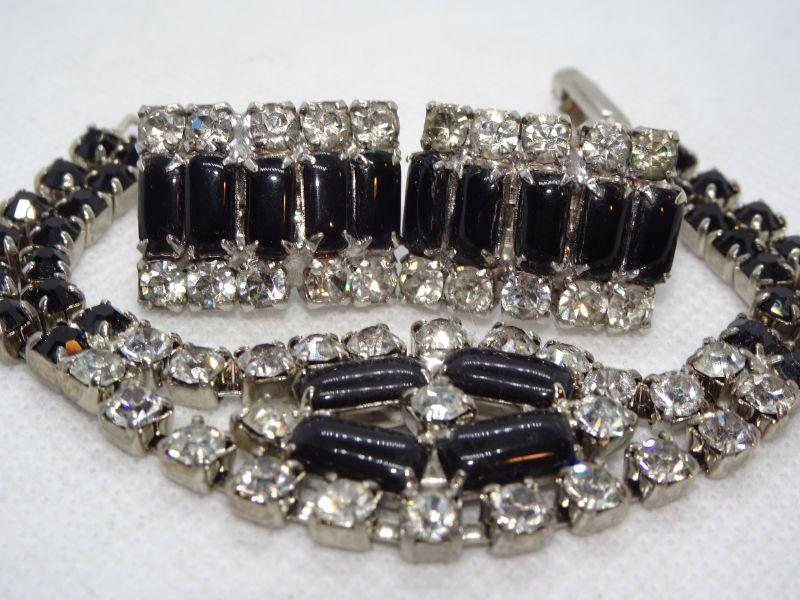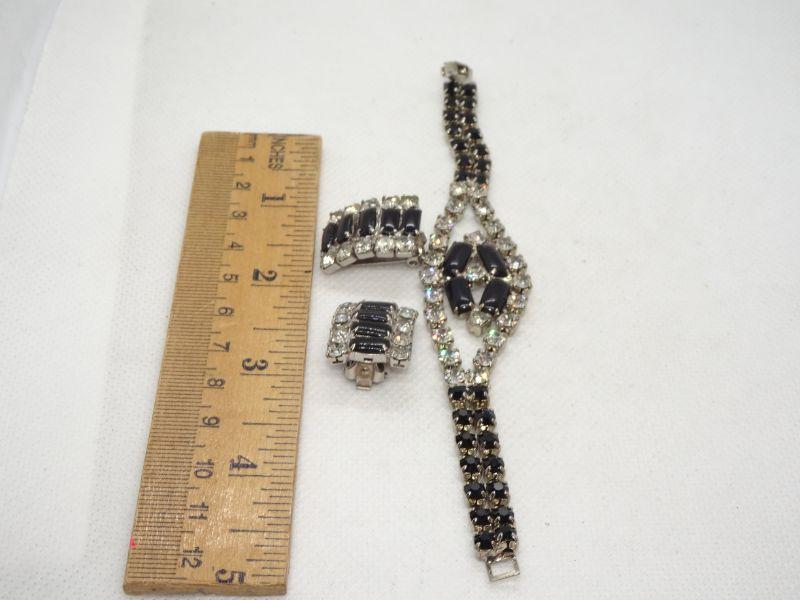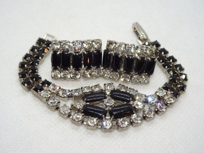 Black Tie Affair - Black Glass & White Rhinestone Bracelet & Clip Earrings - Reserve
