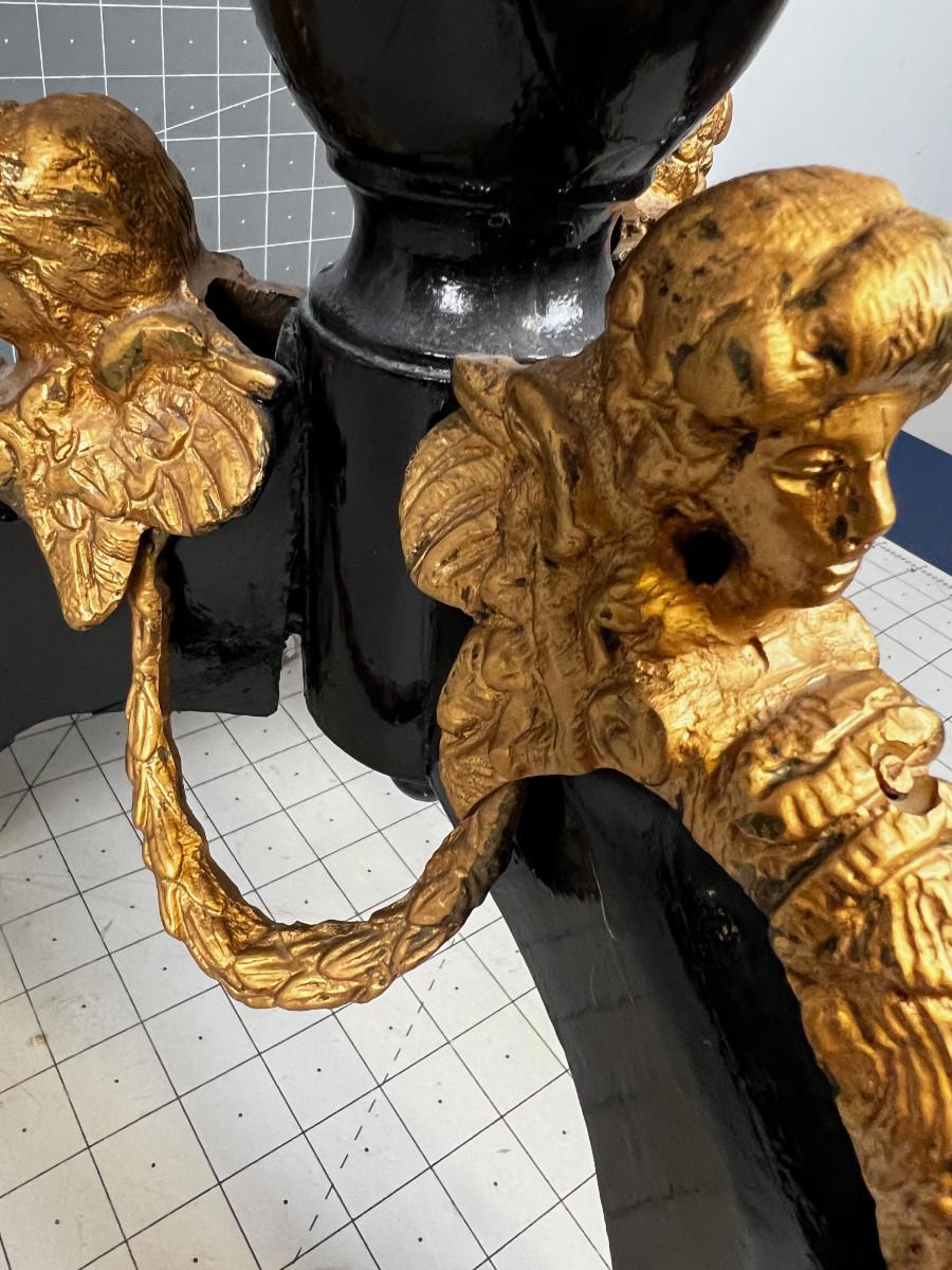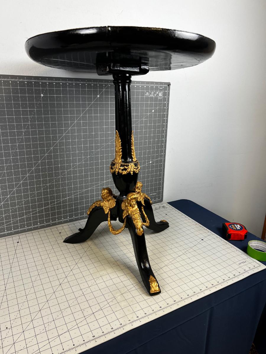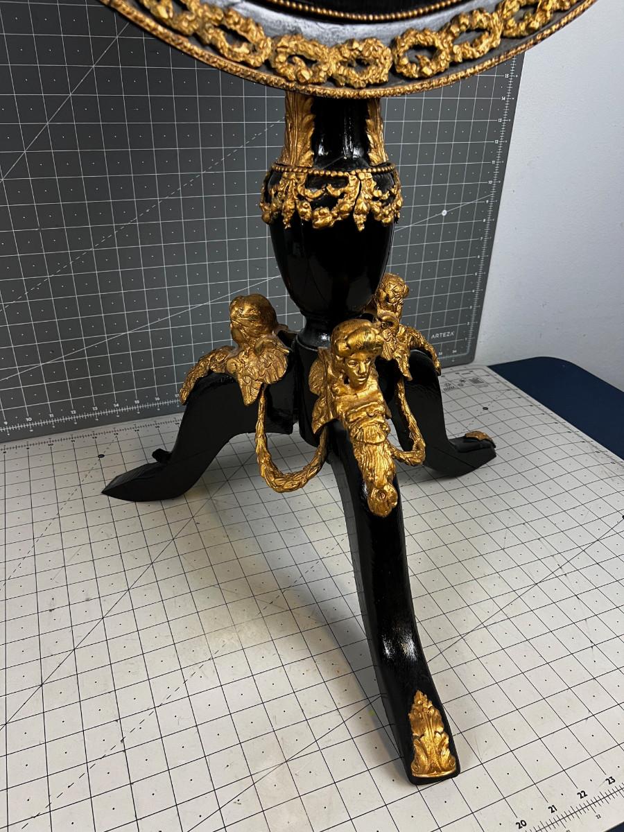Black Top Occasional Table with  Gold Trimmed Round Top  Folding Table Dresden Hand Painted Tiles, UNIQUE!