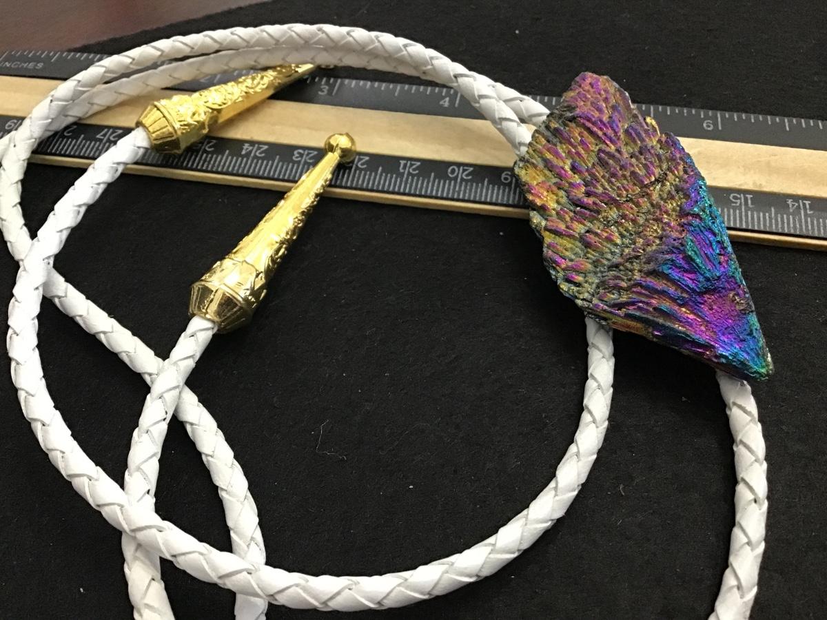Black Tourmaline Rainbow Electroplated Quartz Bolo