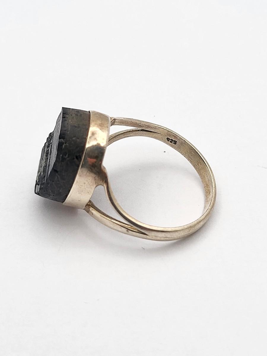 Natural Black Tourmaline Rough Pendant, Rings 925