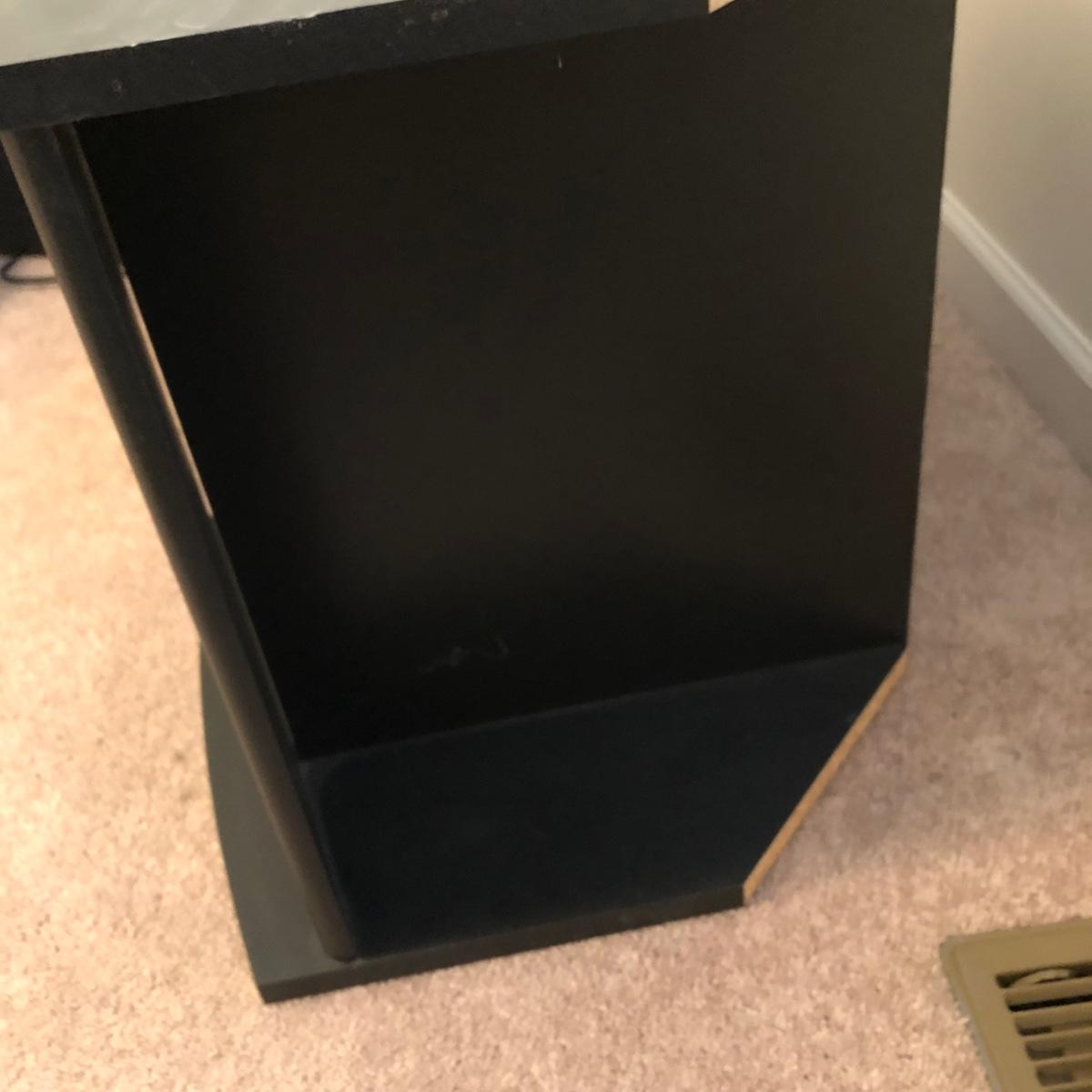 This TV stand is in excellent condition; it has no scratches, nicks or dents. The inside shelf is adjustable. It has an opening in the back for cords and is made of particle board. It measures 32” x 19.5” x 19”. Local pick up only.