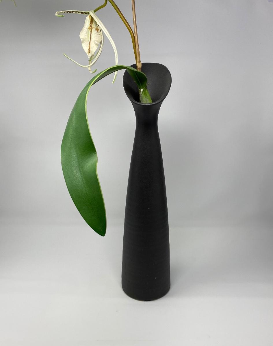 Black Vase with Artificial Flower