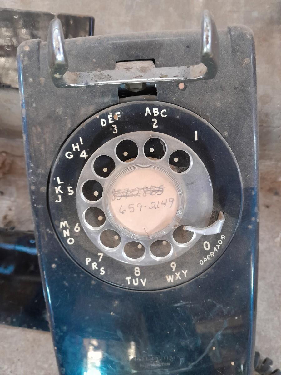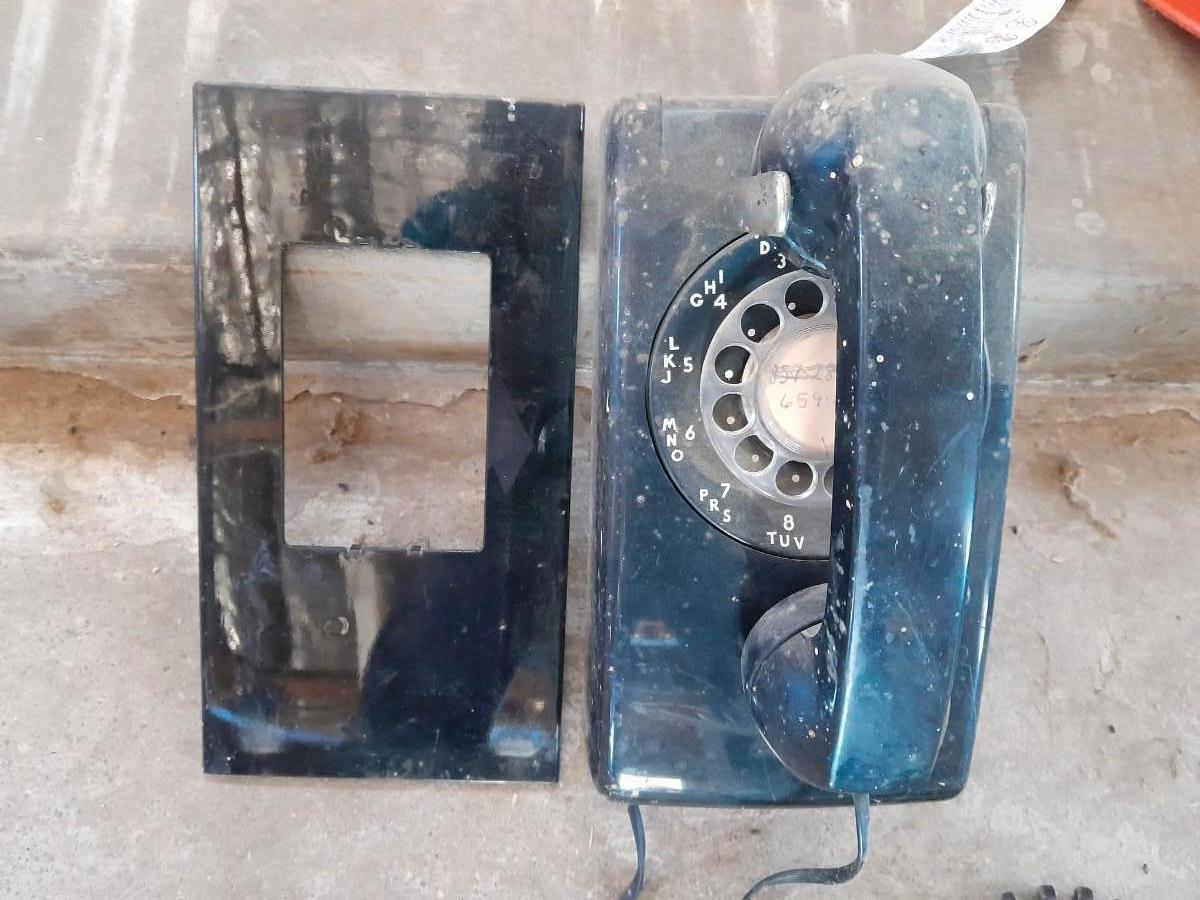 BLACK VINTAGE ROATRY WALL MOUNT HOME PHONE WITH TRIM PIECE WILL CLEAN RIGHT UP!