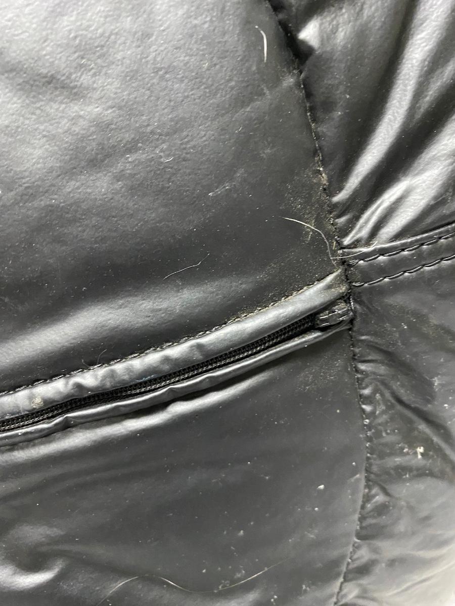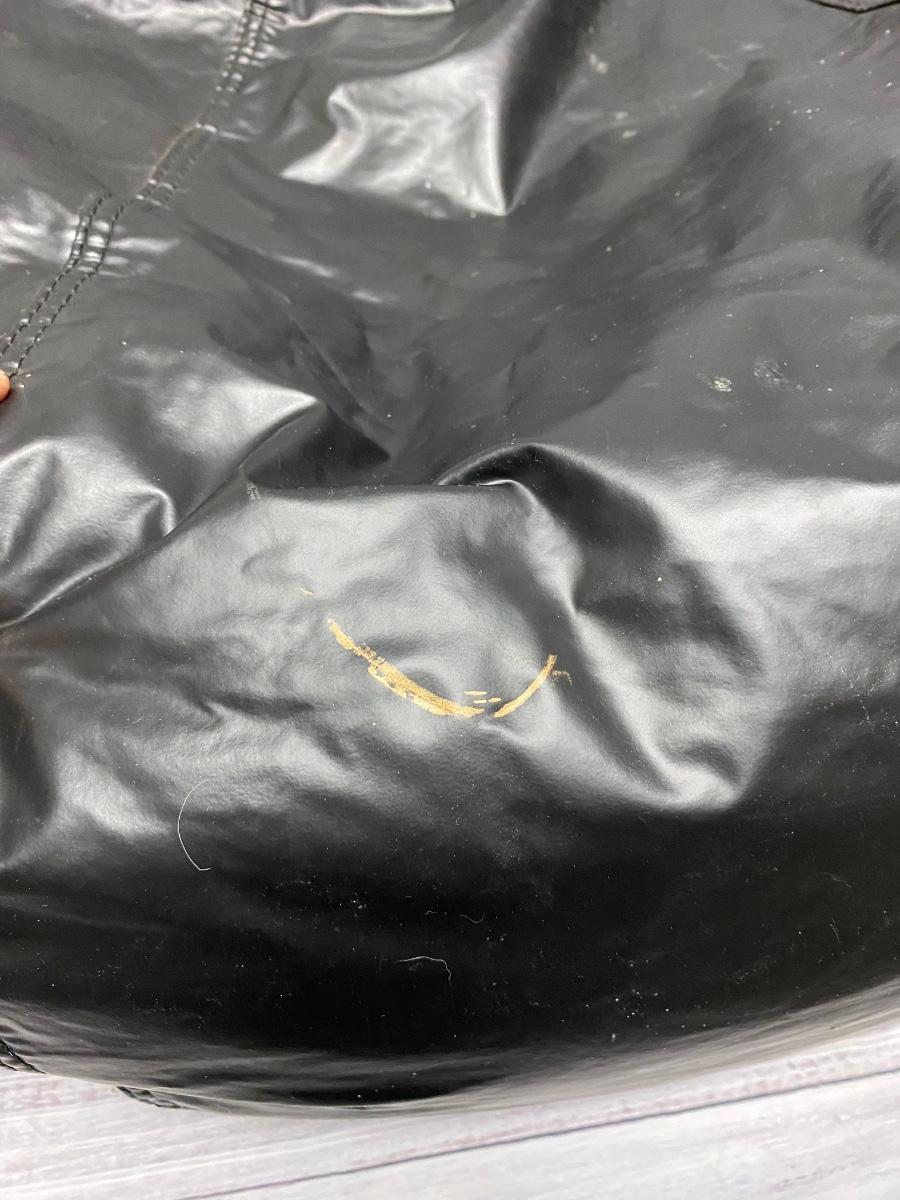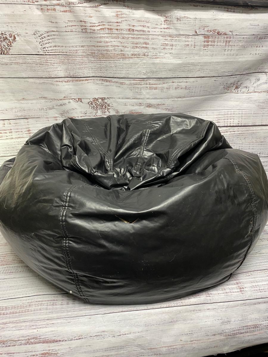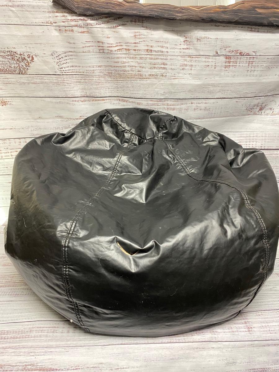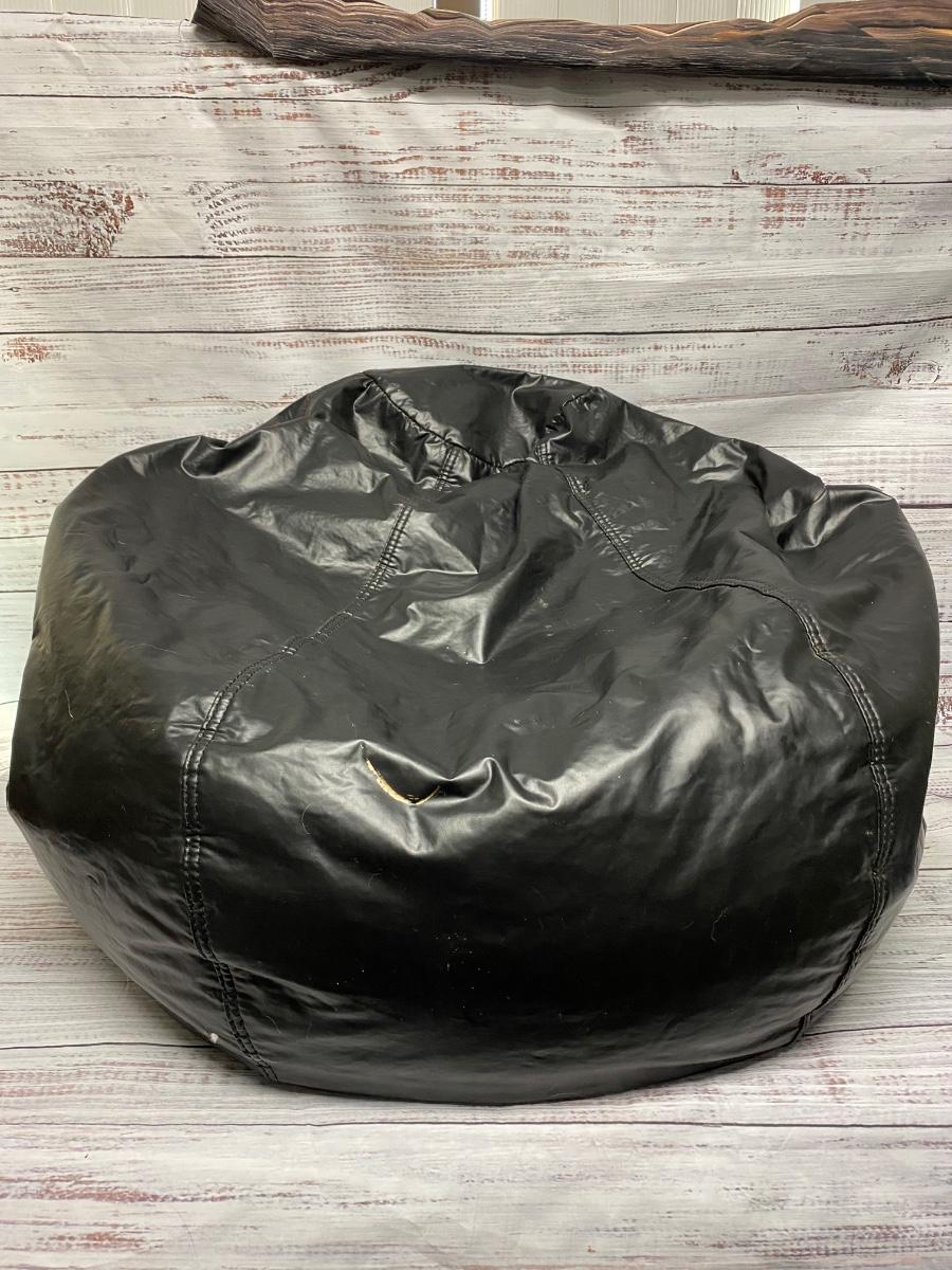 Black Vinyl Bean Bag, there are no significant rips or tears to the bean bag and is in good useable condition. Check pictures for more details and for sizing. There is a small mark on one side of the bean bag, check pictures for more details and for sizing.