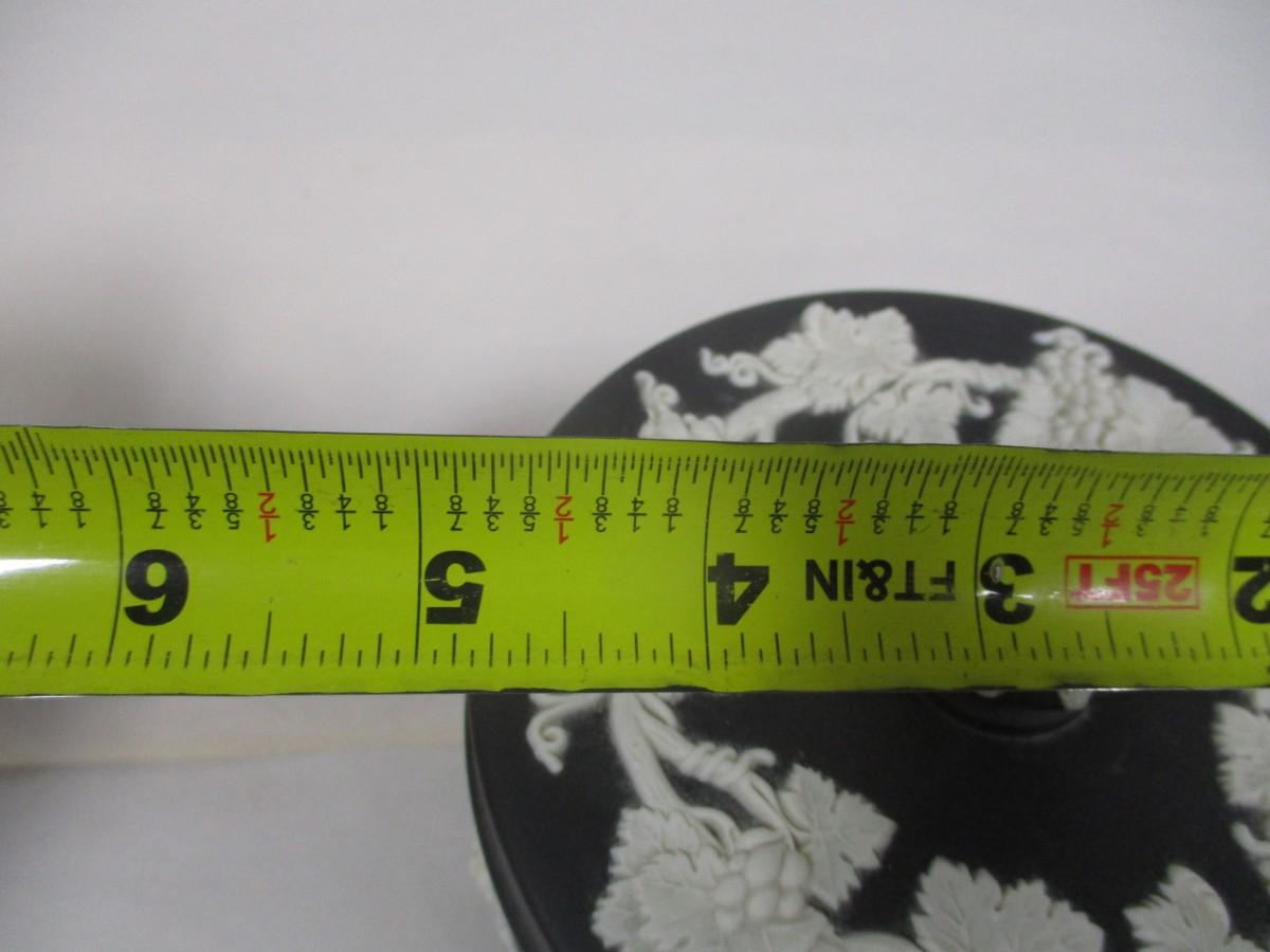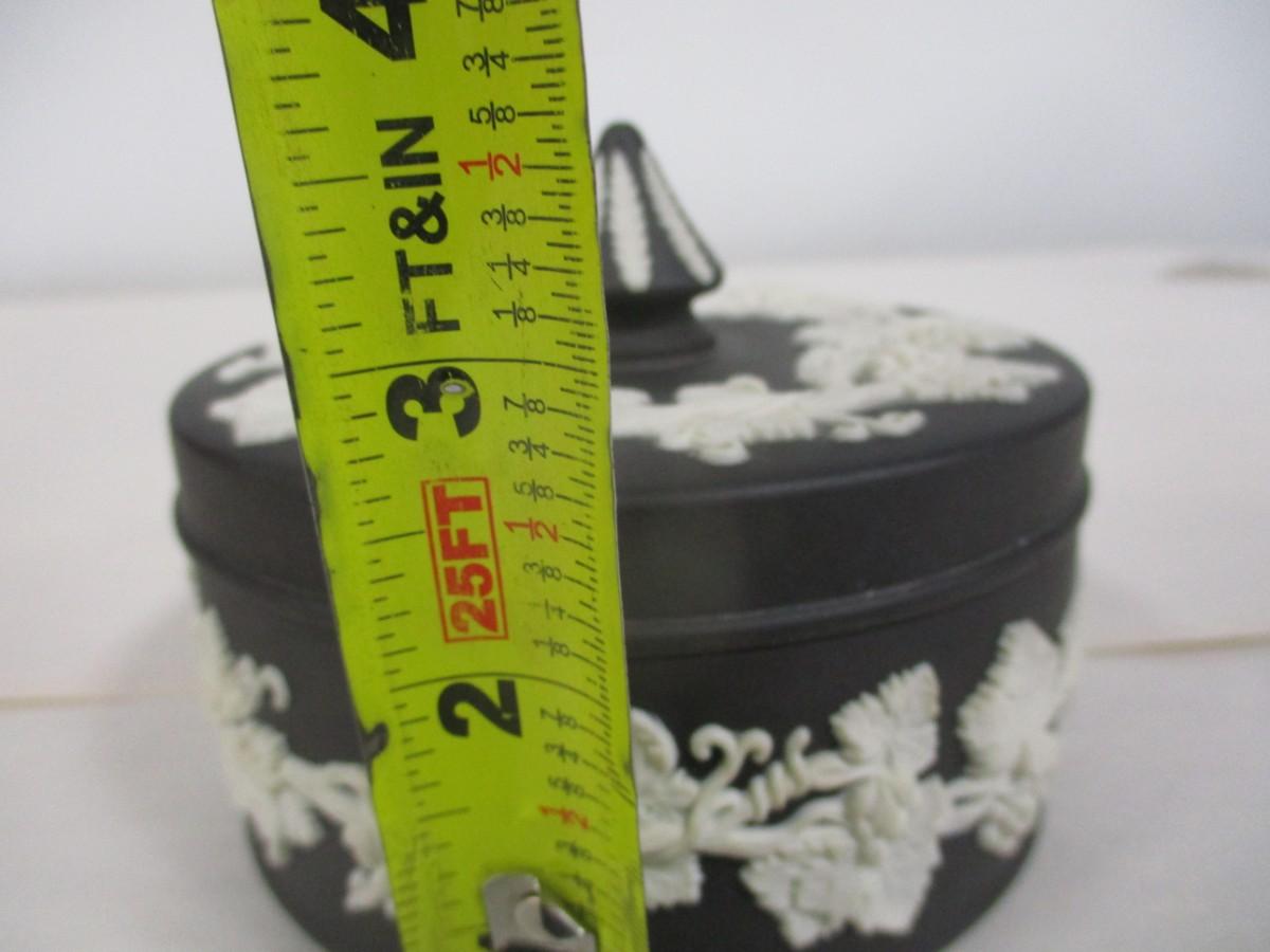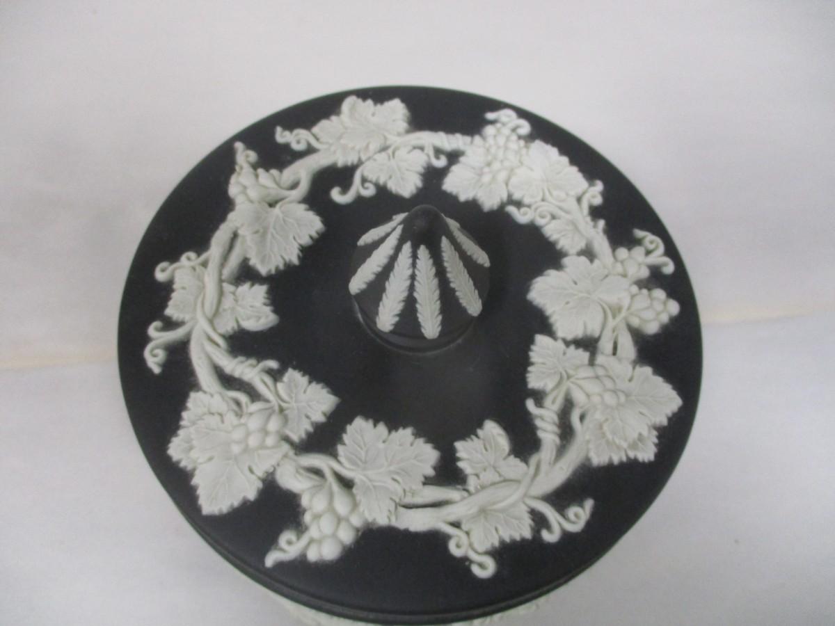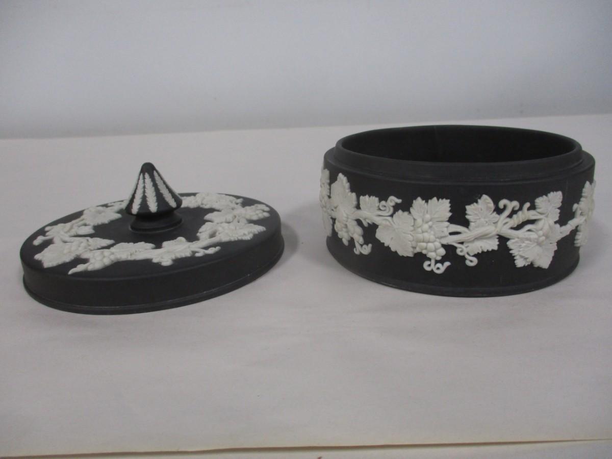 Black Wedgewood Jasperware Covered Candy Dish With White Grapevine Trim