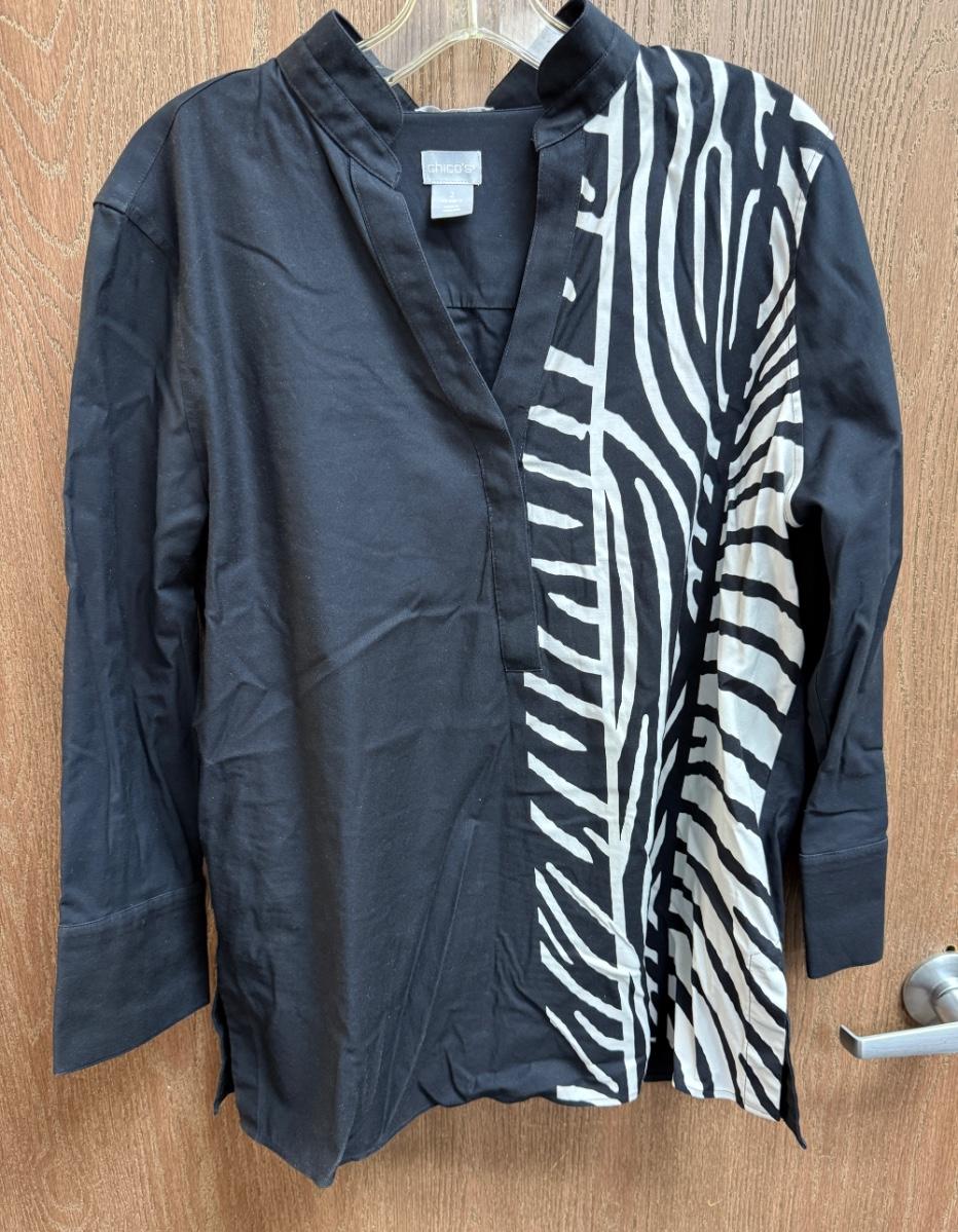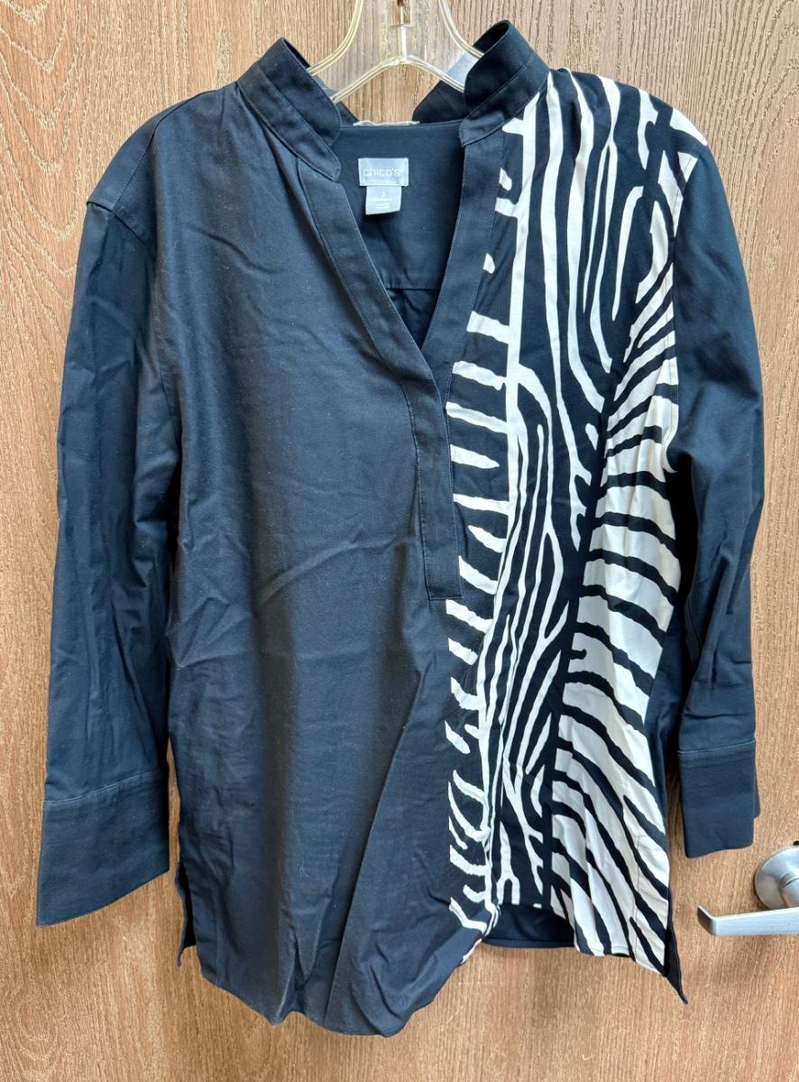 Black & White Zebra Print Blouse Chico's Size 2 No-iron Chic Stretch