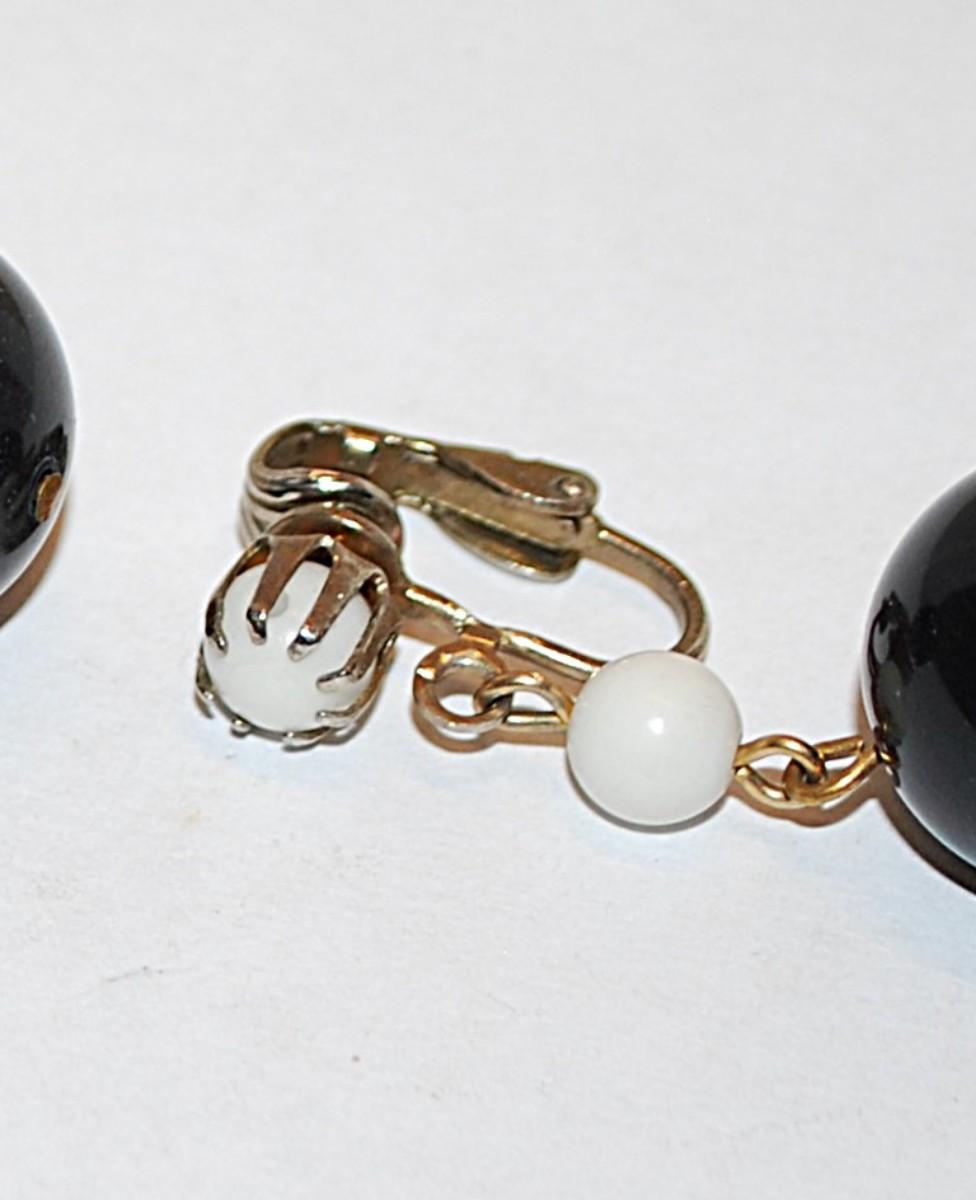 Black & White GLOBES EARRING Set with Gold Tone SNAP Clasp
