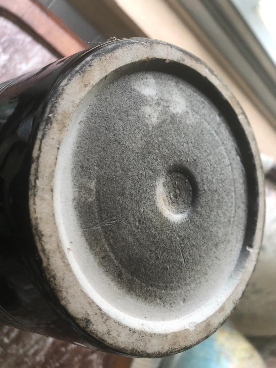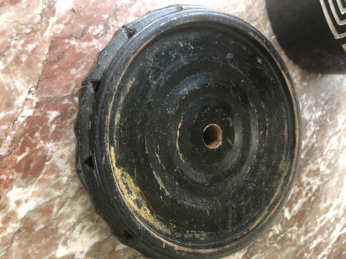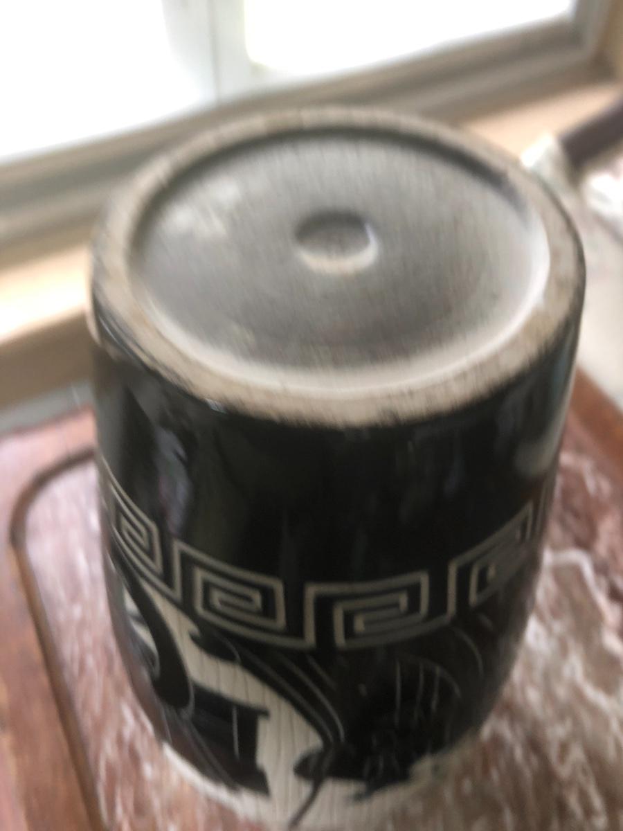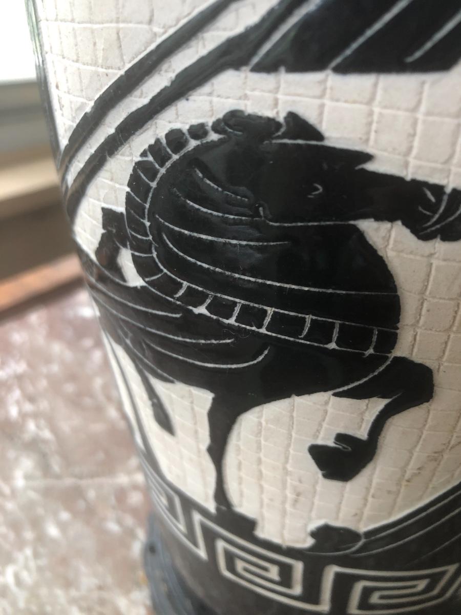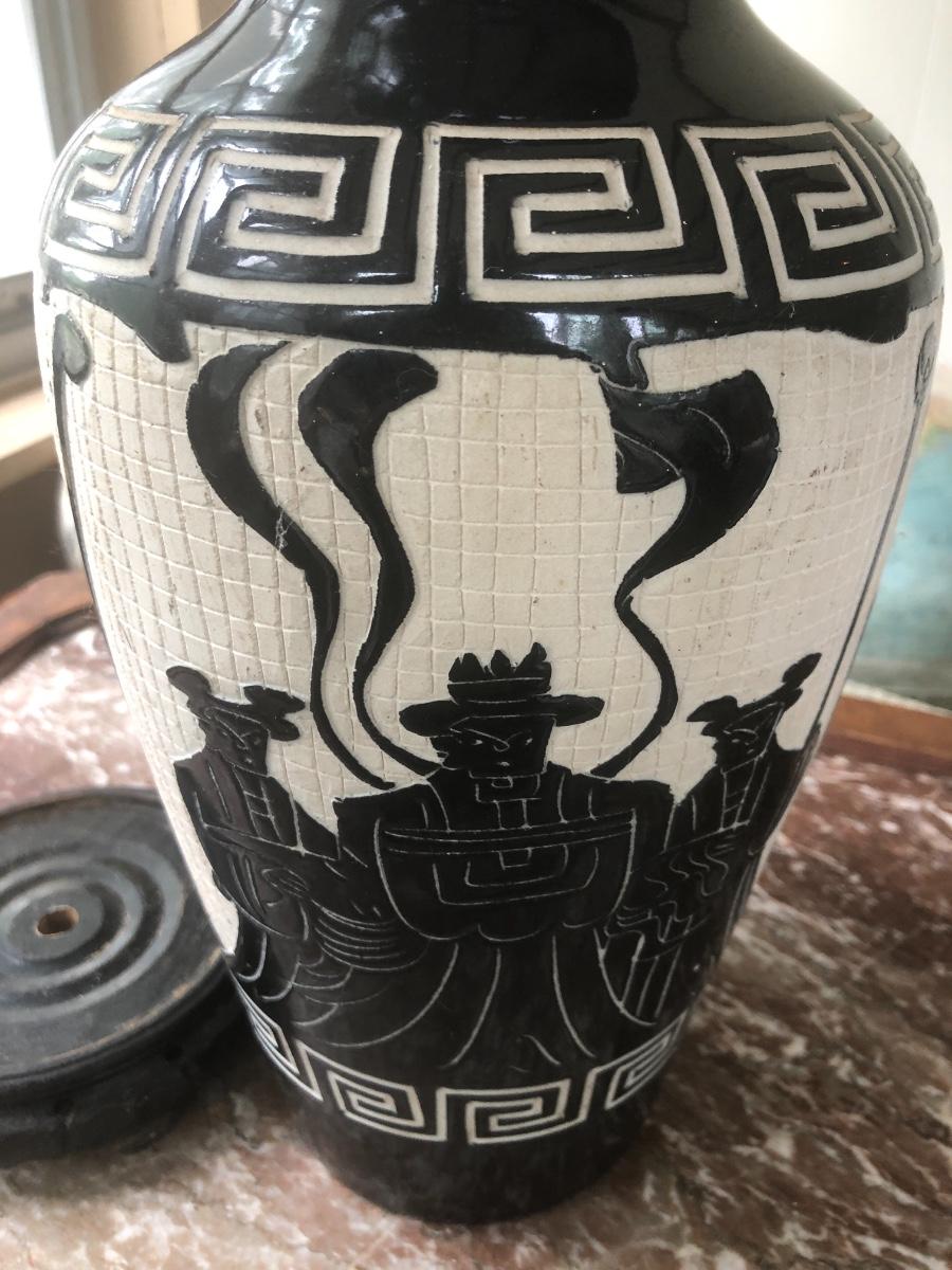 Black & White Greek Key Accented Vase w/ Vintage Wooden Stand -Lot 212