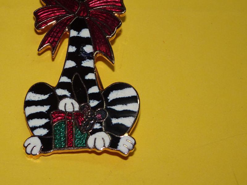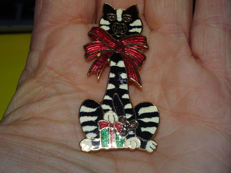 Black & White Kitten, Cat Christmas Pin, Red Bow