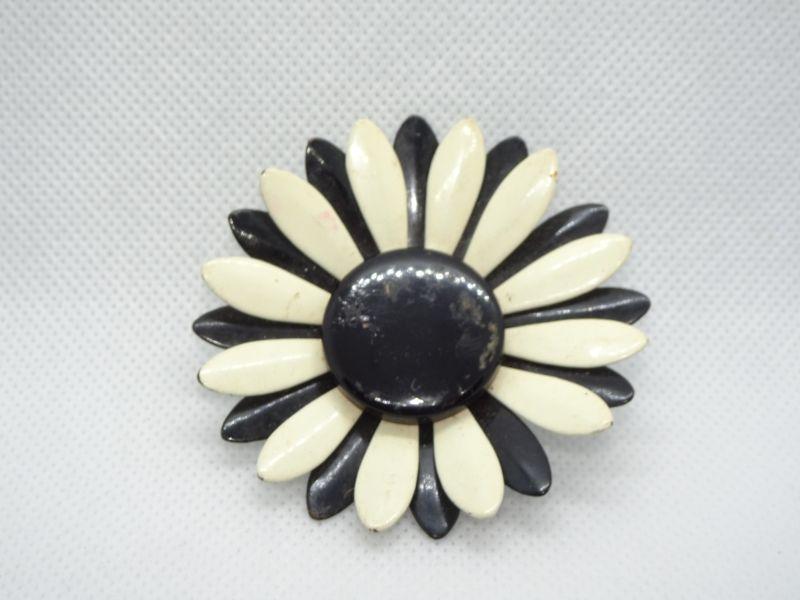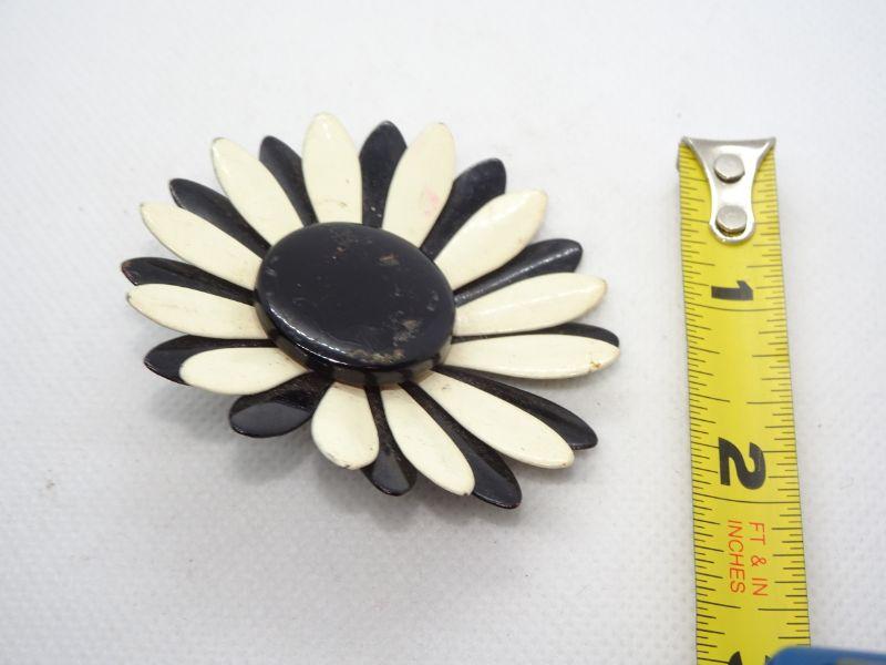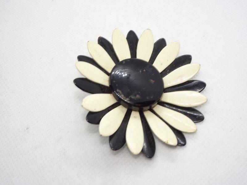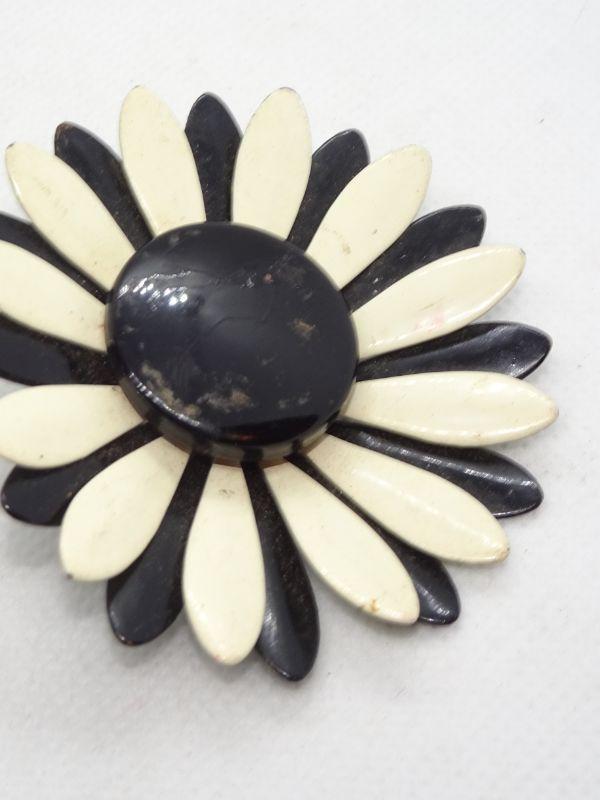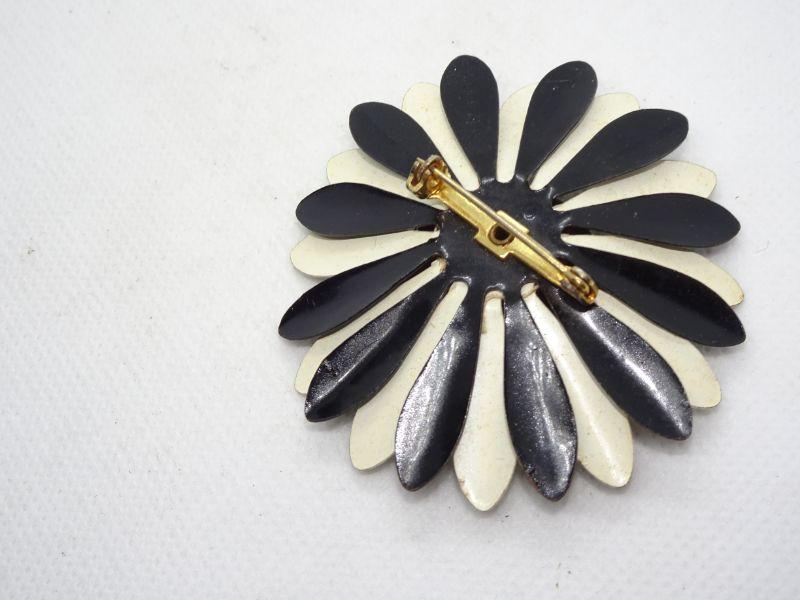 Black & White Metal Painted Flower Brooch