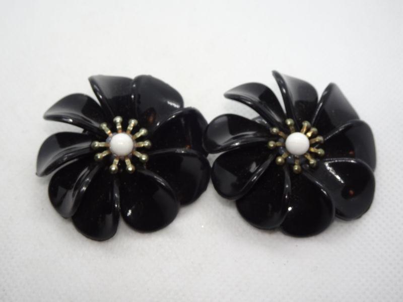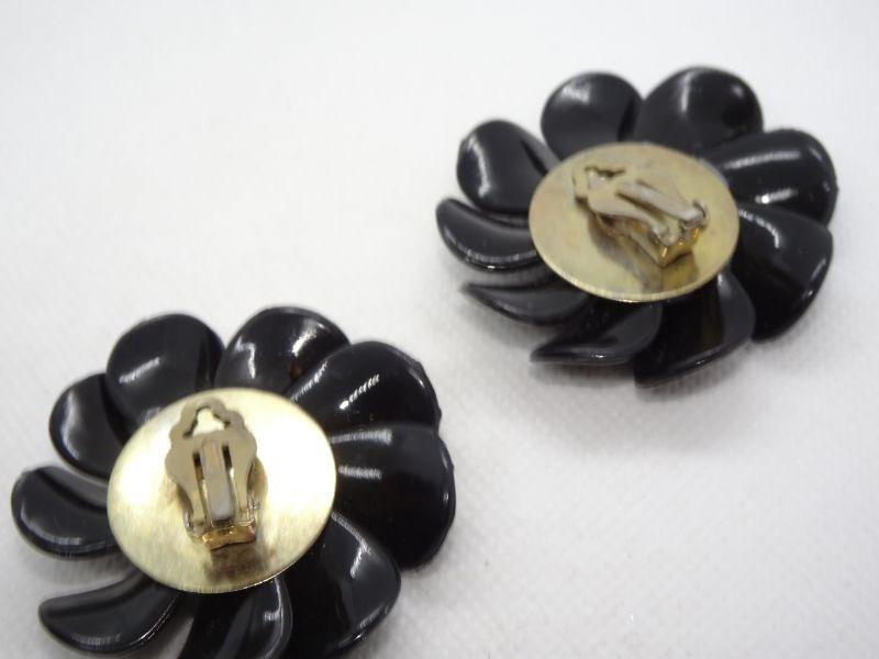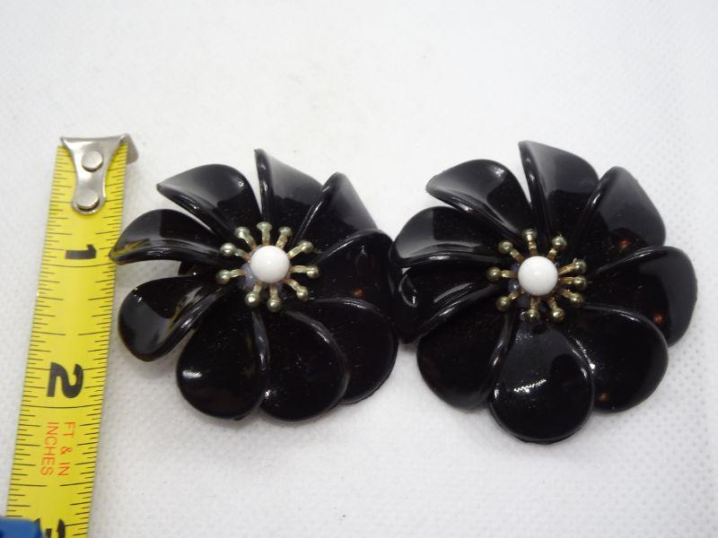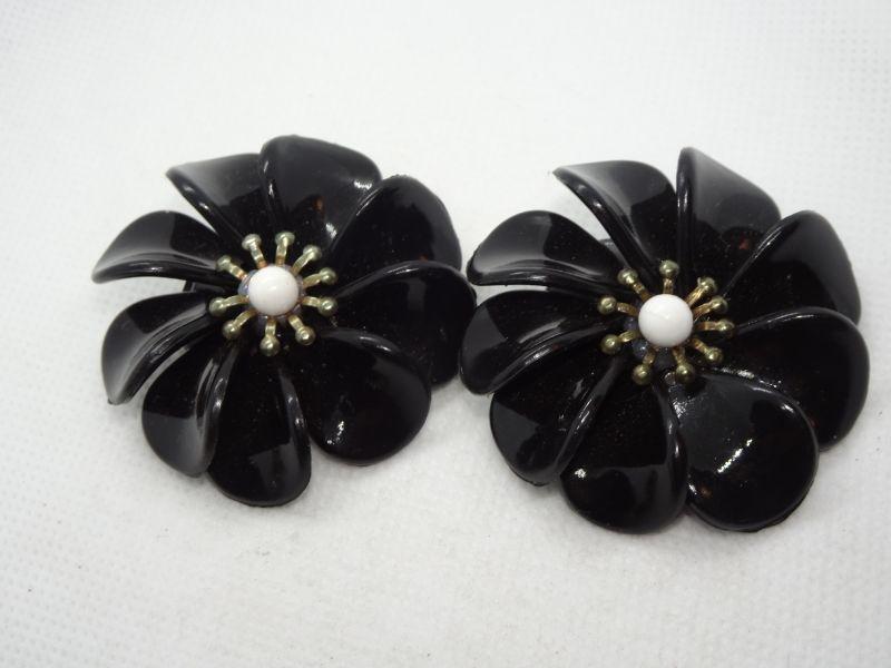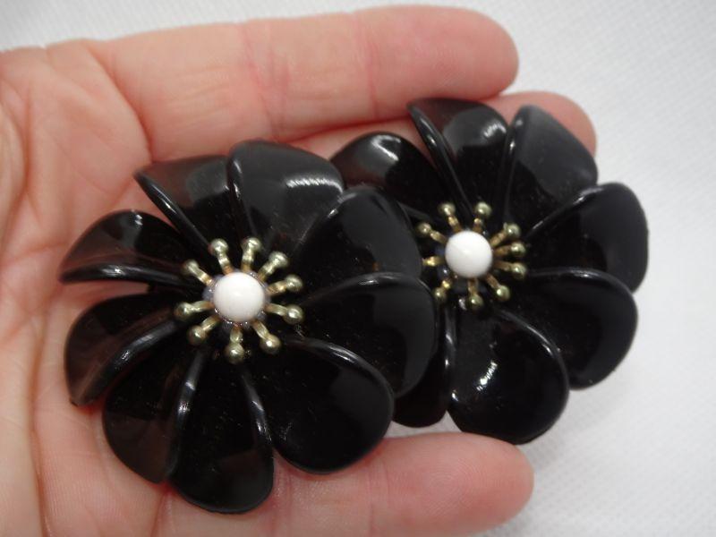 Black & White Plastic Flower Clip Earrings  Mod Flower Power