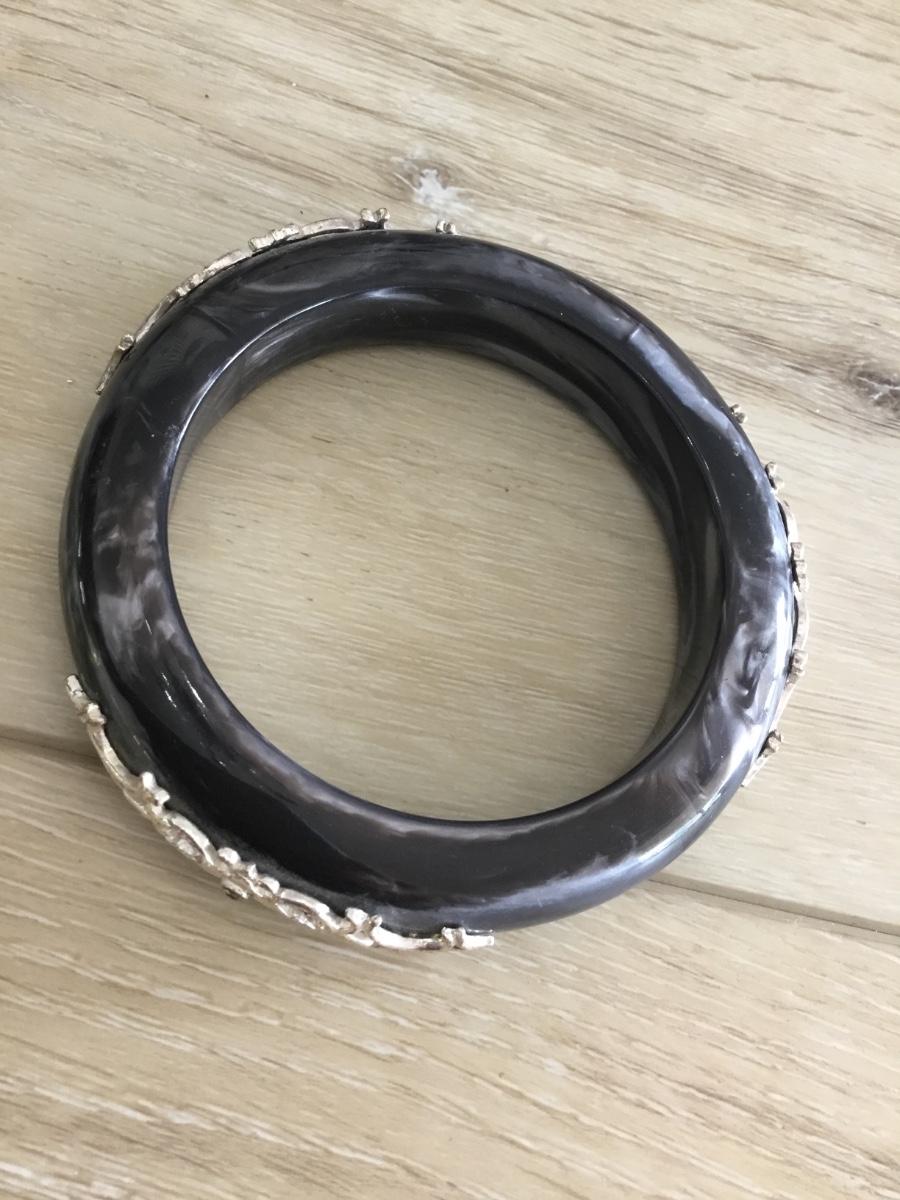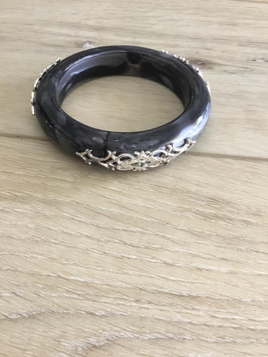Black with gray, silver marble with Silvertone scrolled, accents, bangle bracelet