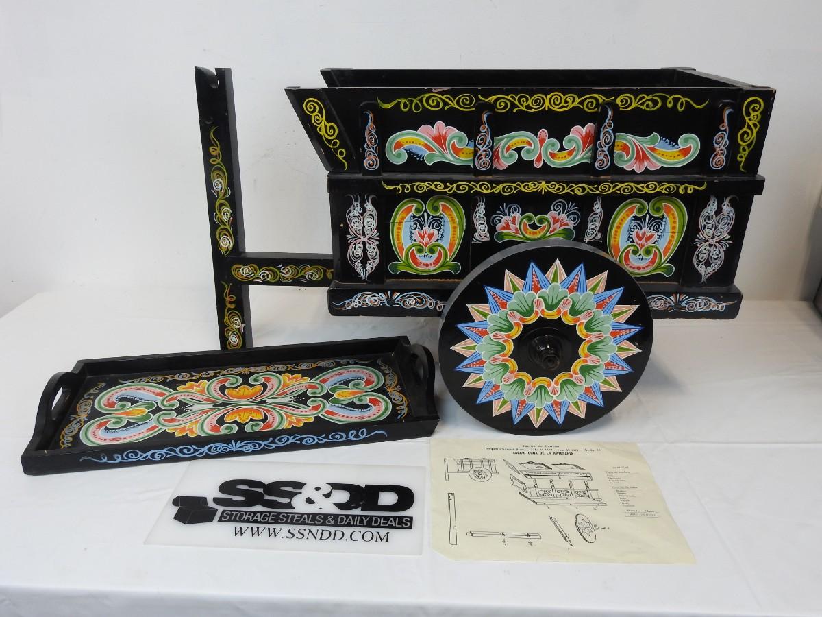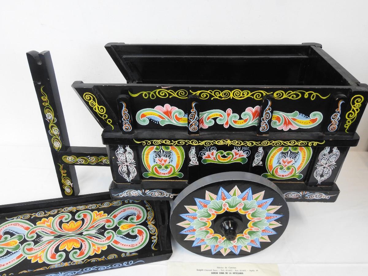 Black Wooden Hand Painted Small Cart from Costa Rica - VIntage?