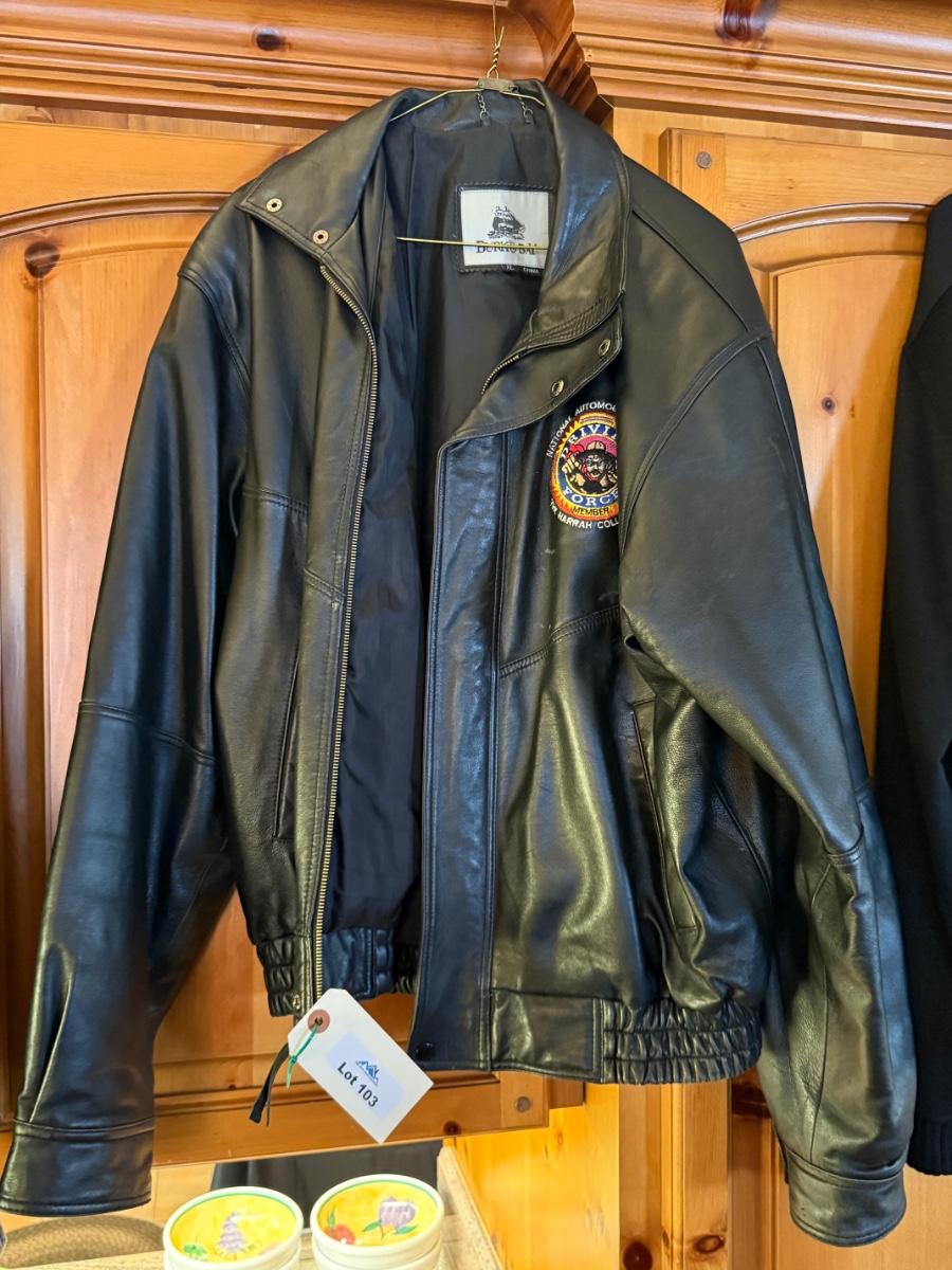 Black XL Burks Bay Leather Coat w/National Auto Museum patch