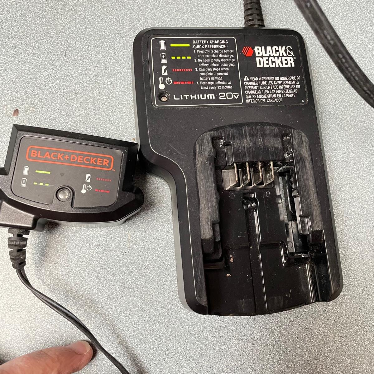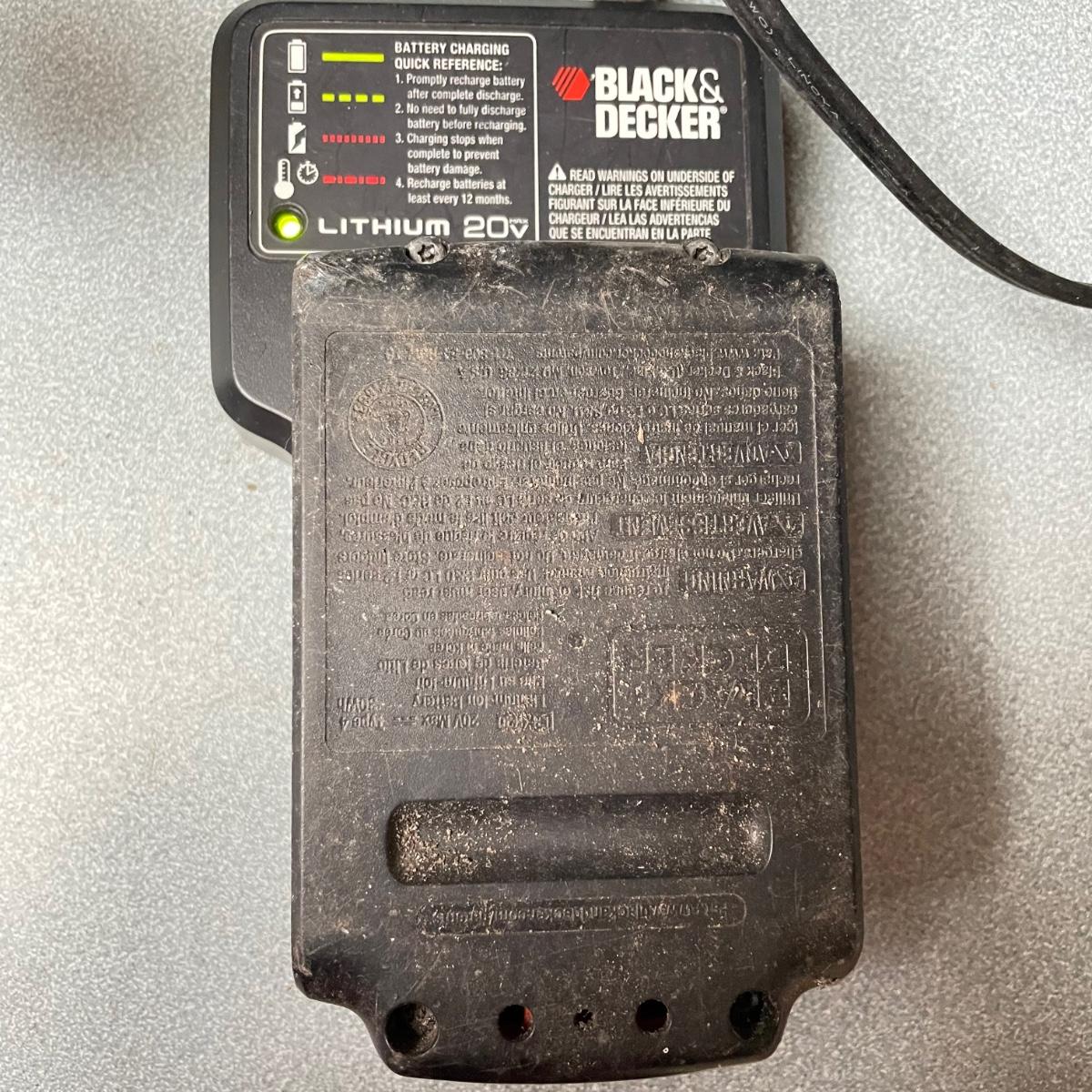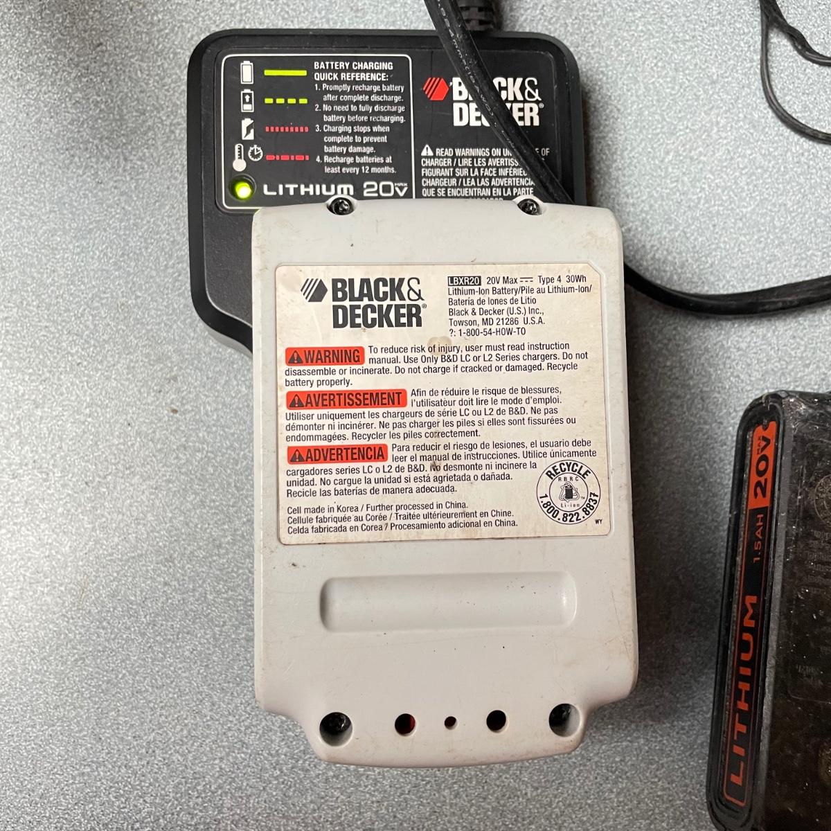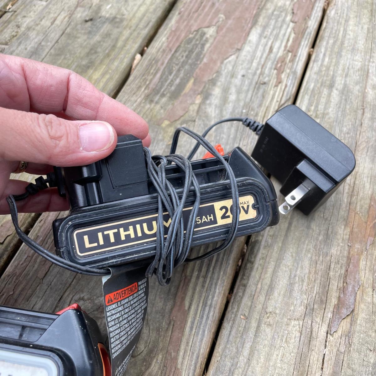 Bright orange 20v Lithium battery powered string trimmer. This weed eater powered on when tested. Lot includes three Black+Decker 20MAXv batteries and two chargers. Both of the battery chargers lit up when attached to each battery. See images. Local pick up only.