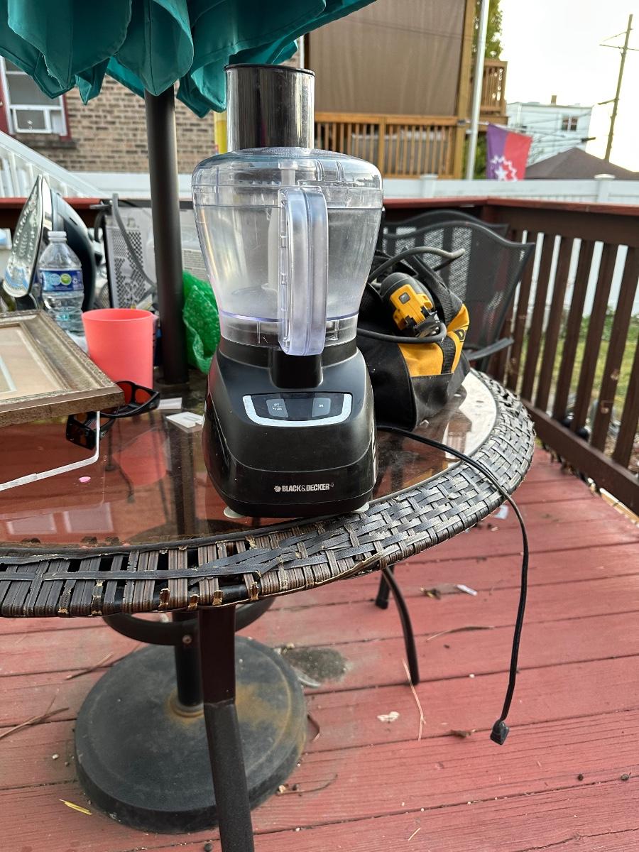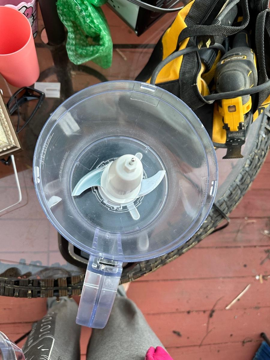 Includes a stainless steel chopping blade and a reversible slicing/shredding disc.