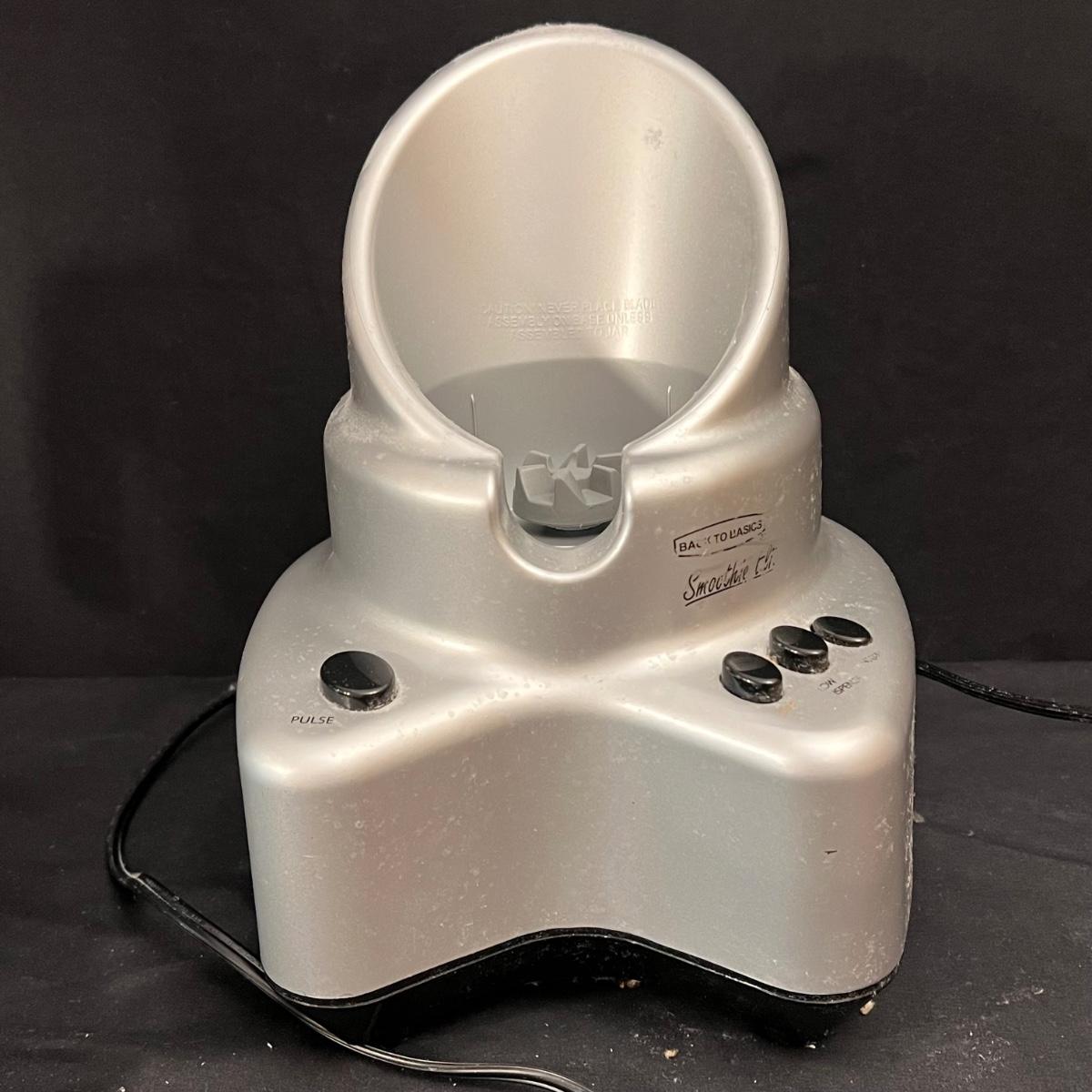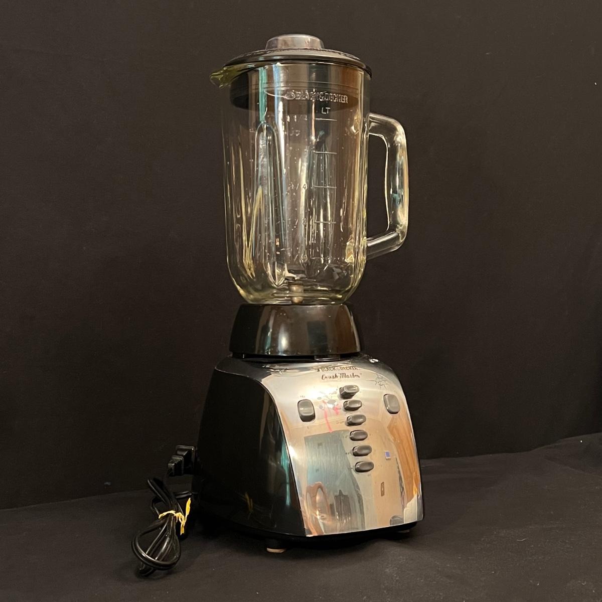 This lot includes a Black & Decker Crush Master blender and a Back to Basics Smoothie Elite blender. Both blenders powered on when plugged in. The Black & Decker blender pitcher is glass and the Back to Basics pitcher is plastic. Both blenders measure approximately 7” x 7” x 17”H. Shipping available.